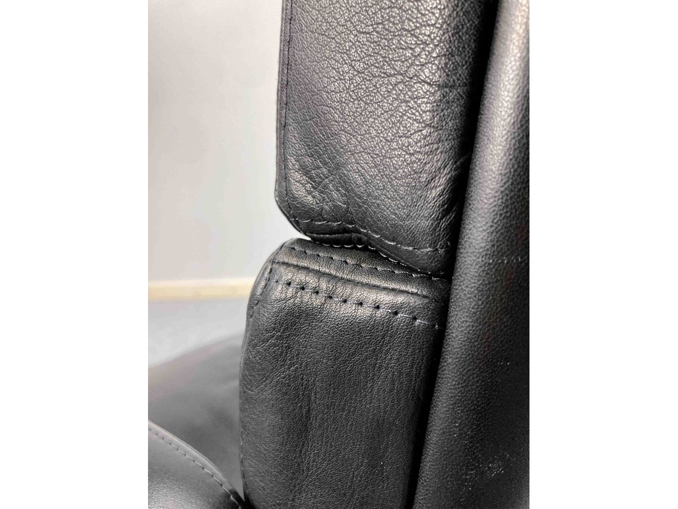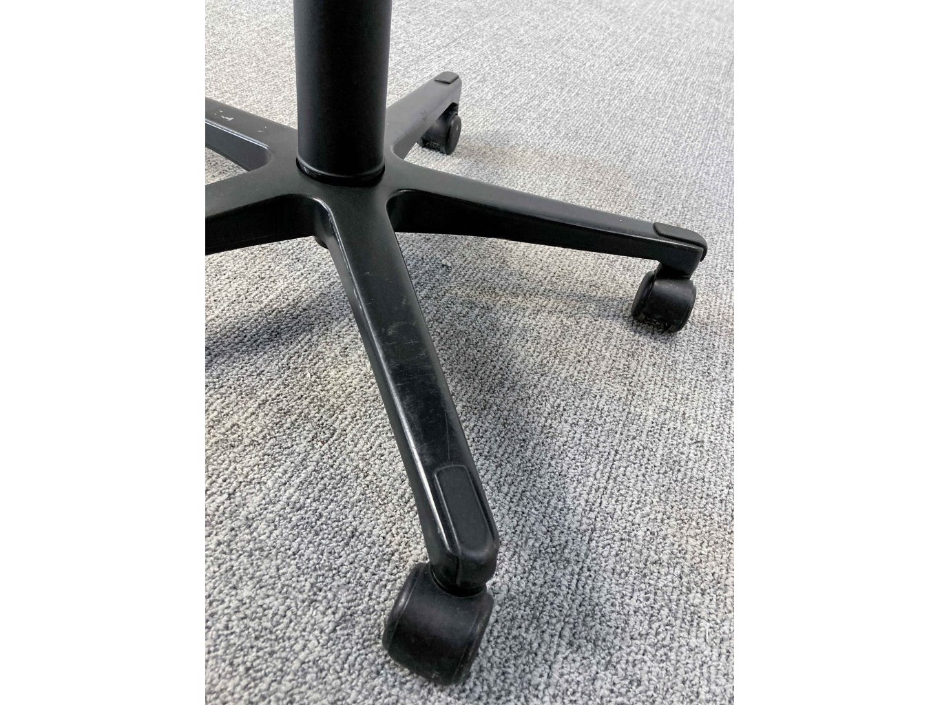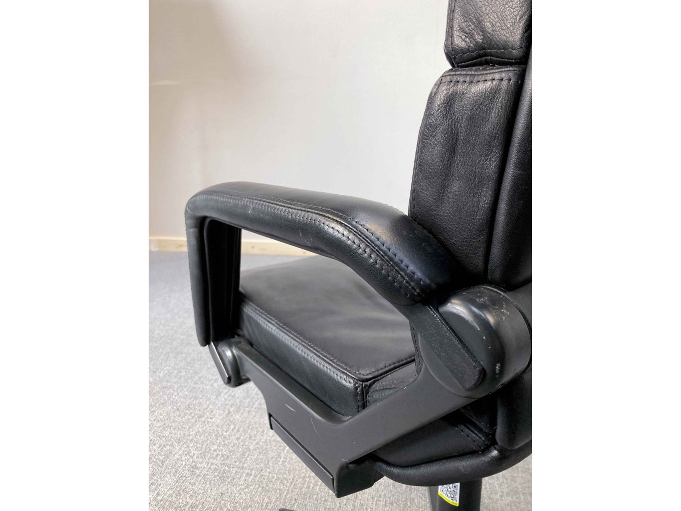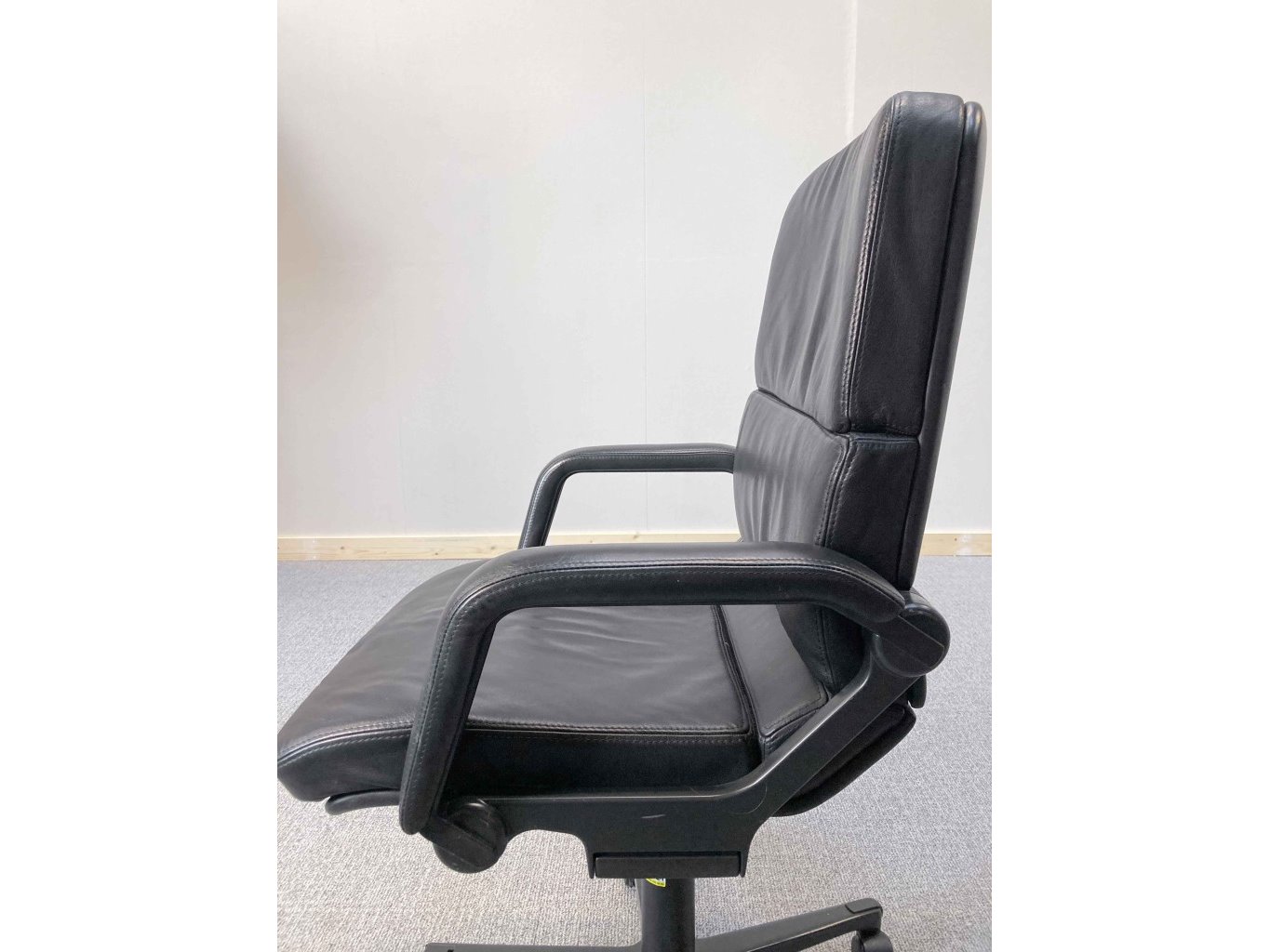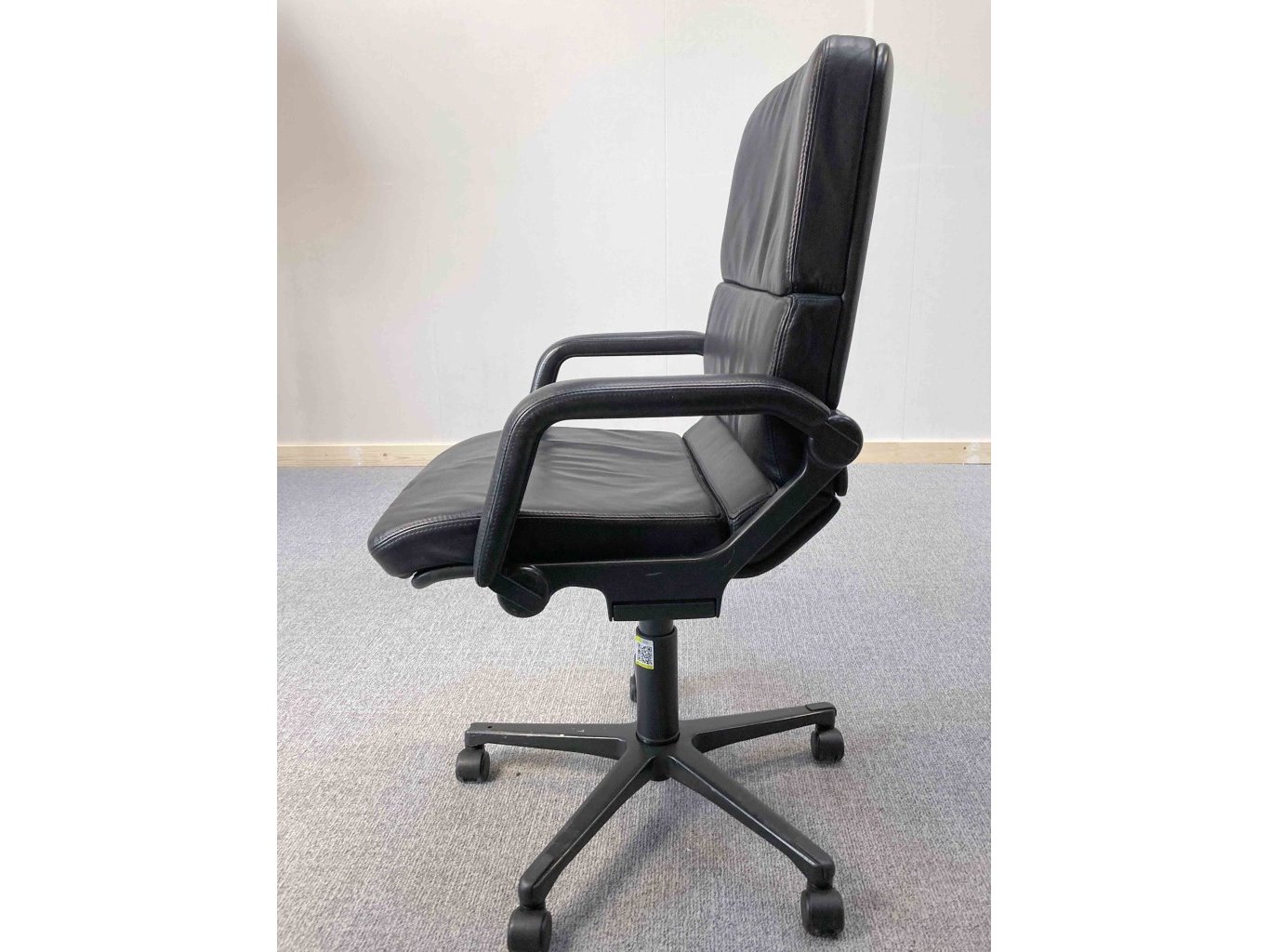 1x AHREND Cirkel Bureaustoel – Zwart, Leer, Zwart Metaal, Voetkr mt wielen, kleine gebruiksporen voetkruis, klein stuk voetkruis ontbreekt, wasbare vlek op zitvlak.