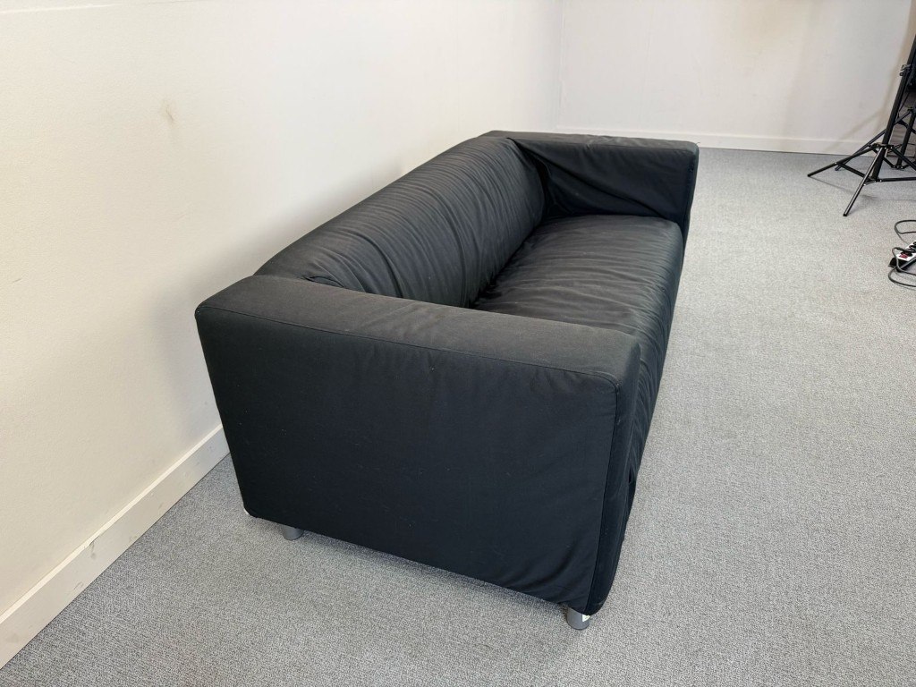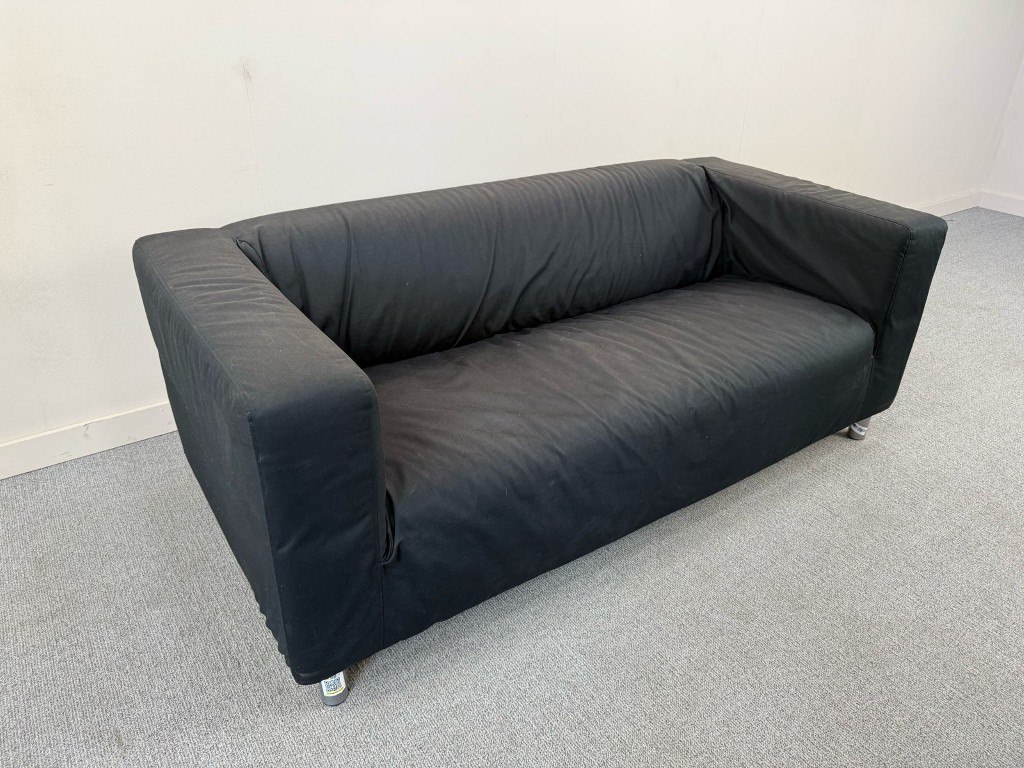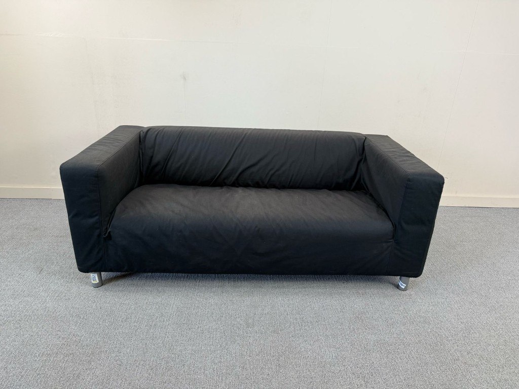 1x IKEA Zetel 2-zit H85xB180xD65 - Zwart/Stof/Metaal, met zichtbare gebruikssporen en stofverzadiging