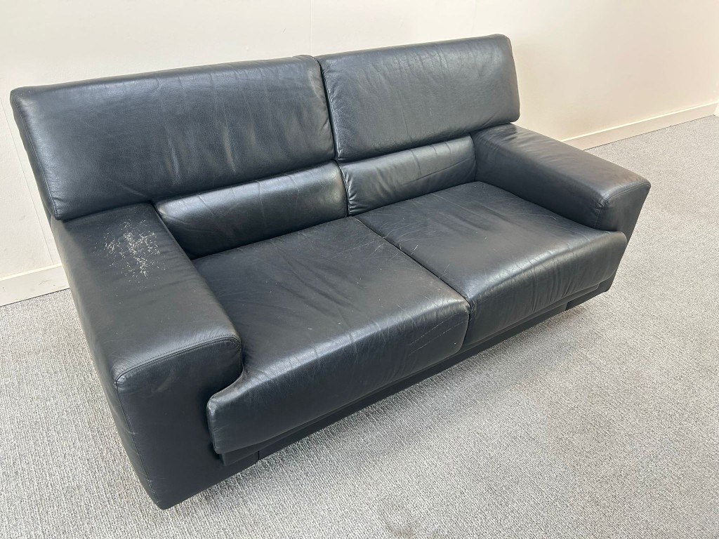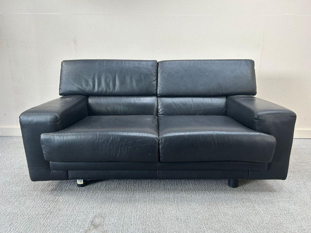 H80xB155xD80 - Zwart/Kunstleer, met enkele gebruikssporen en stofverzadiging