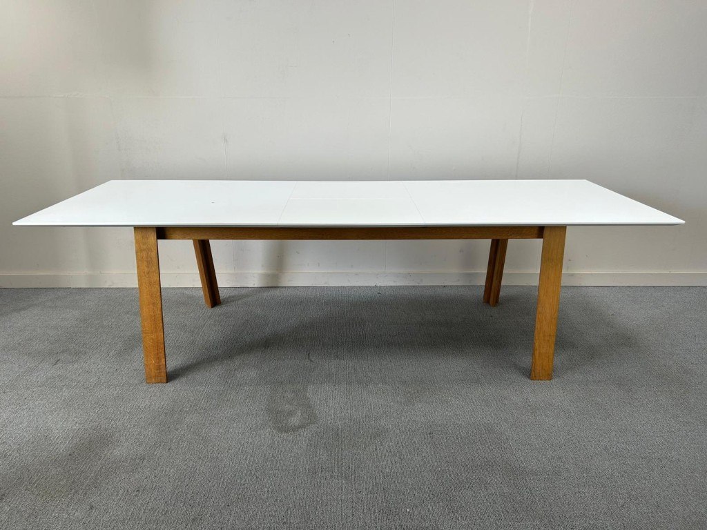 H75xB220xD95 - Wit/Melamine/Hout, in goede staat, uitschuifbare witte tafel op houten onderstel