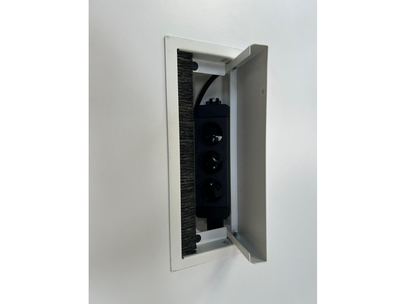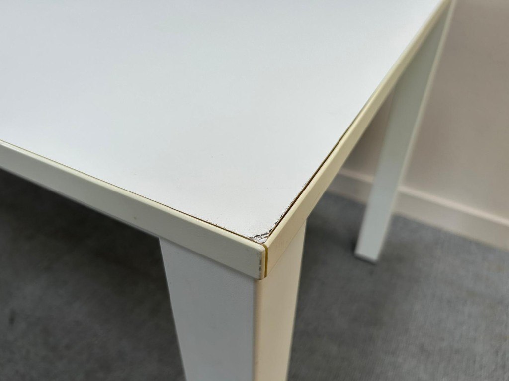 1x PAMI Vergadertafel H74xB240xD80 - Wit/Melamine/Wit Metaal, met enkele gebruikssporen, komt met kabeldoorvoer