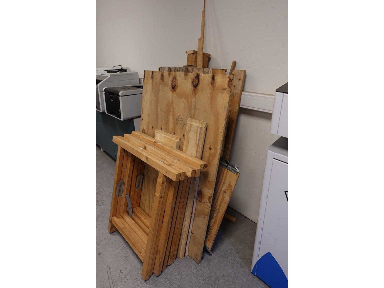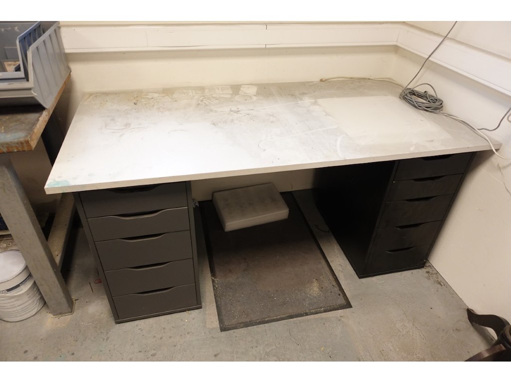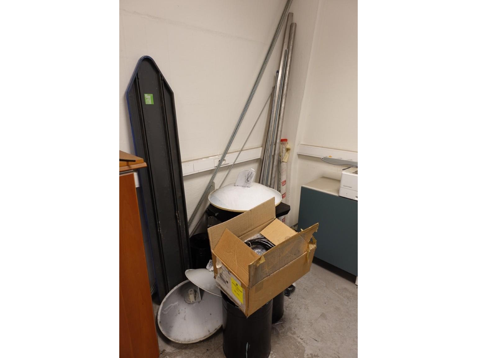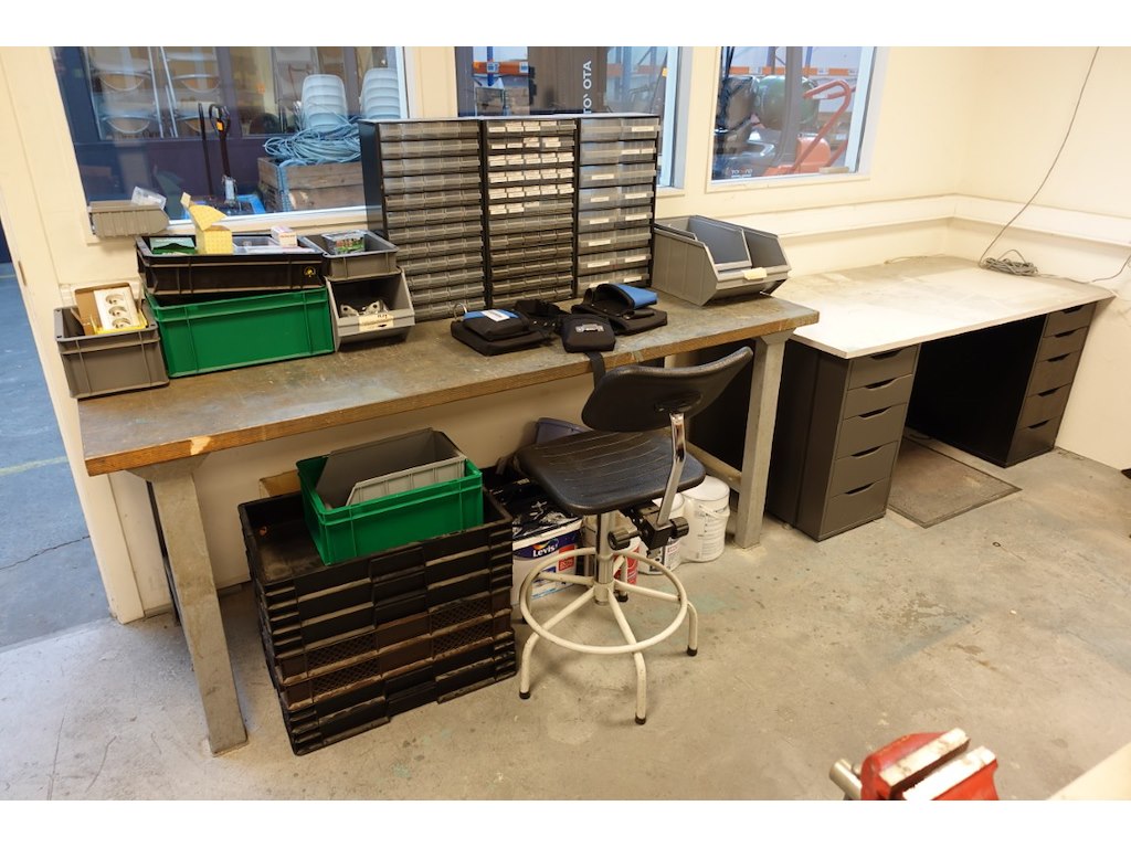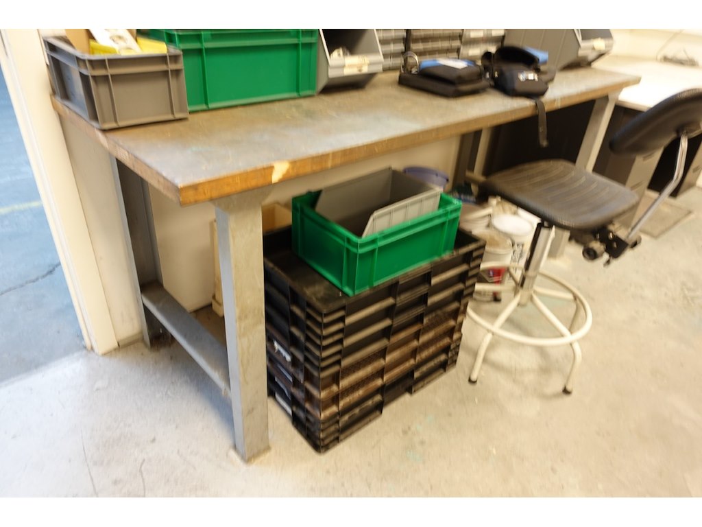 Alles dient meegenomen te worden, oa: tafels, stoelen, schragen, printers, metaal, kasten, werkbank met toebehoren (excl. lot 12,65,66)
