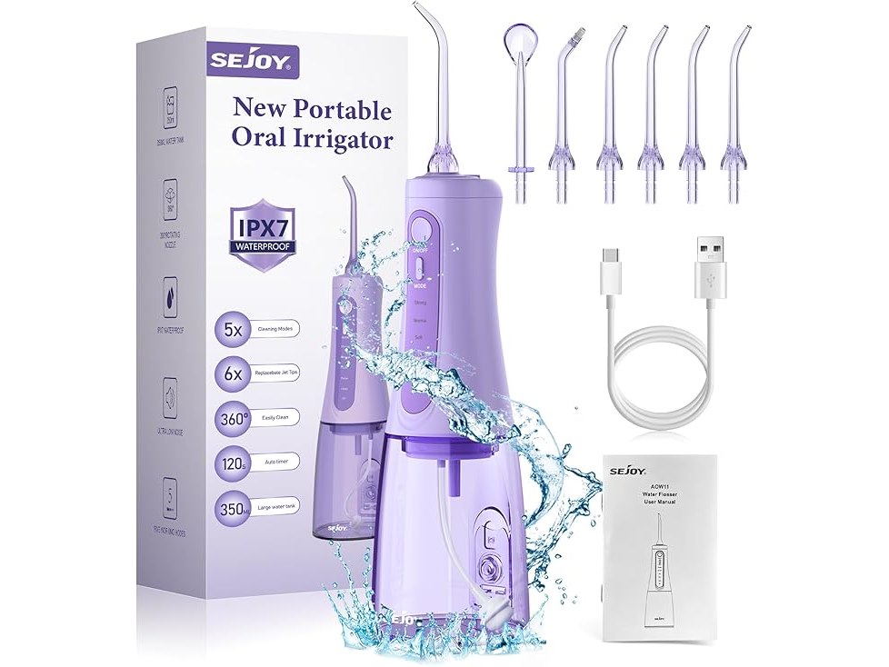Ongeopend, Draadloze monddouche 2024, 5 modi en 8 sproeiers, draagbaar, 350 ml, elektrische monddouche, IPX7 waterdicht, B0CSSFXYP3