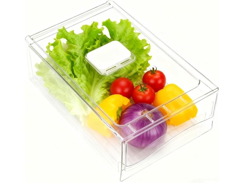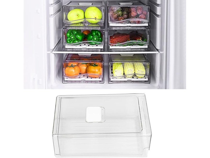 Ongebruikt, volledig, ok, Koelkastcontainers Pantry-opslagbak Koelkast opberglade Refriger Fruit Kaas Voedselorganisatie Containerbak Uittrekbare designkast voor pantry Keukenvriezer(L), B0B6ZQBH86