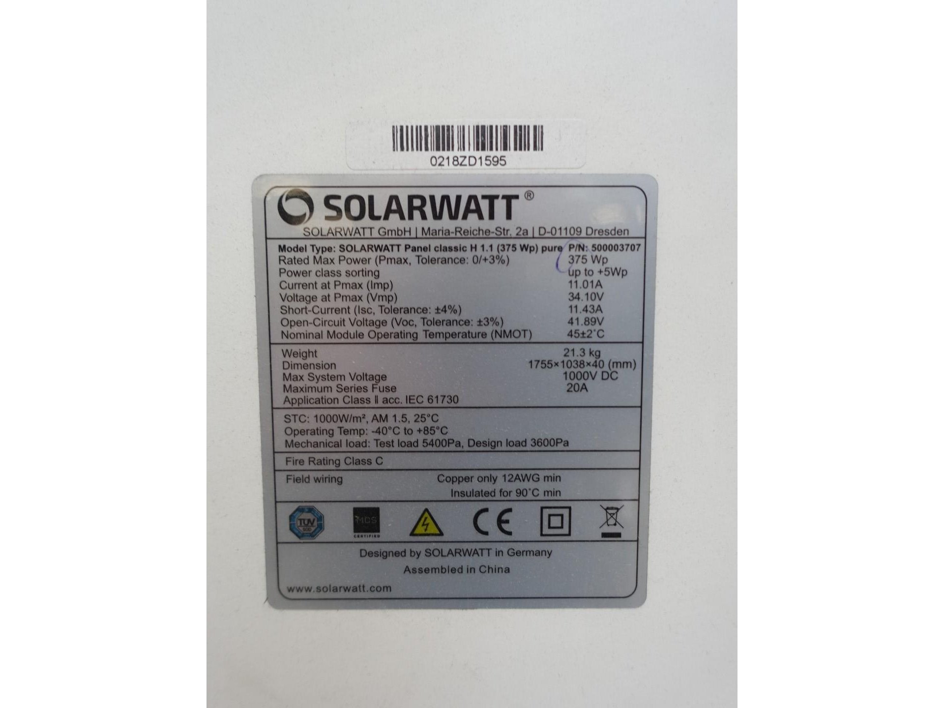 15 x zonnepaneel solarwatt 375 (5.625 wp)