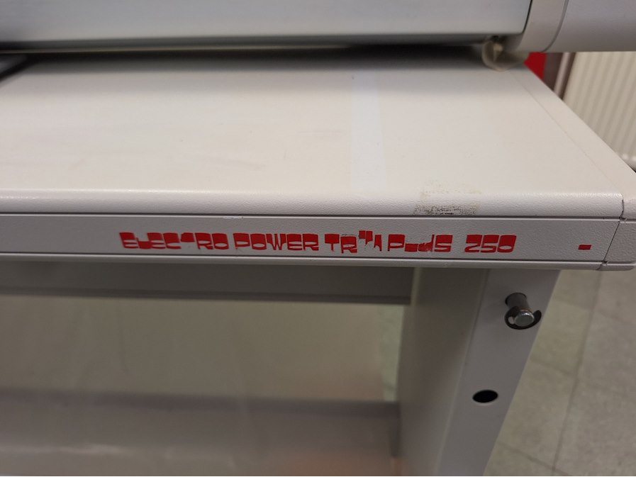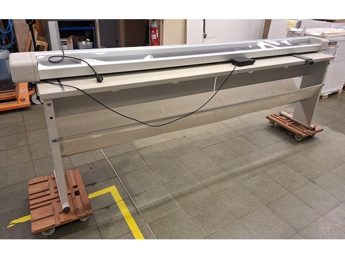 Grootformaat elektrisch bediende snijmachine. Model Electro power PLUS 250. 298 cm breed overmeten, 100 cm hoog.
