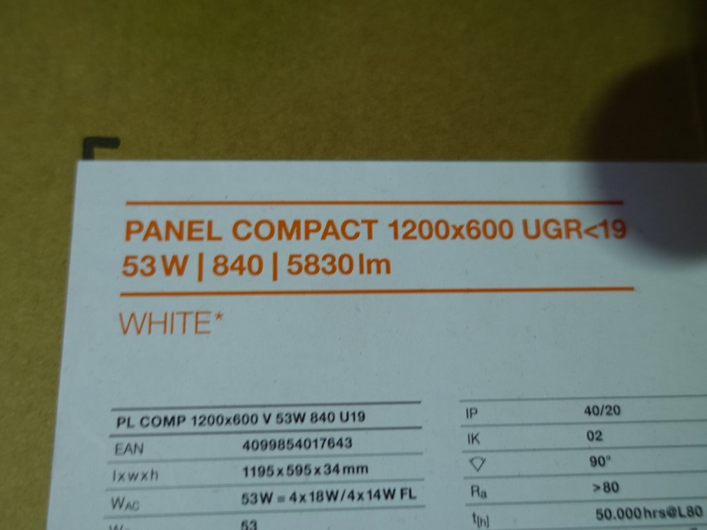 Type: panel compact 1200x600 ugr<19 53w 840 5830lm