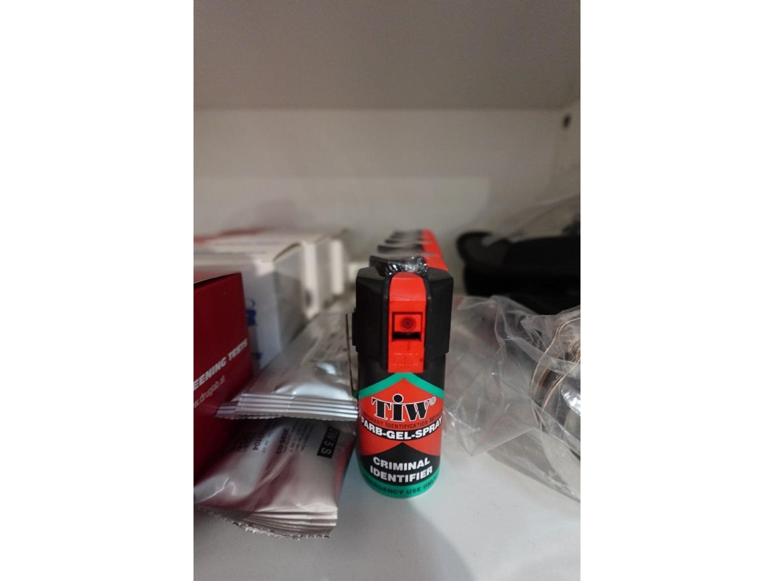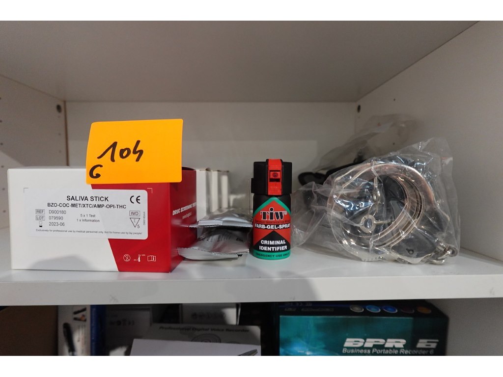 Oa: 2x handboeien, inkt "pepperspray", drugtesten
