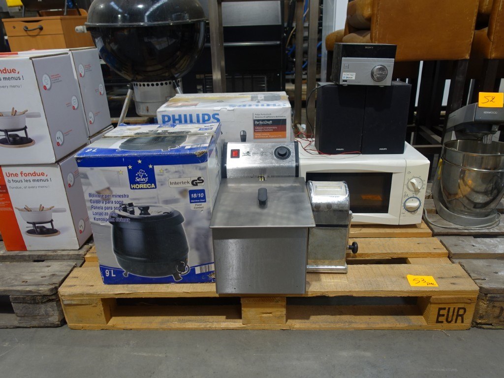 Oa: Microgolfoven , soepverwamer , Friteuse , biertapinstalatie , muziek instalatie , rasp <br /> Locatie: B15