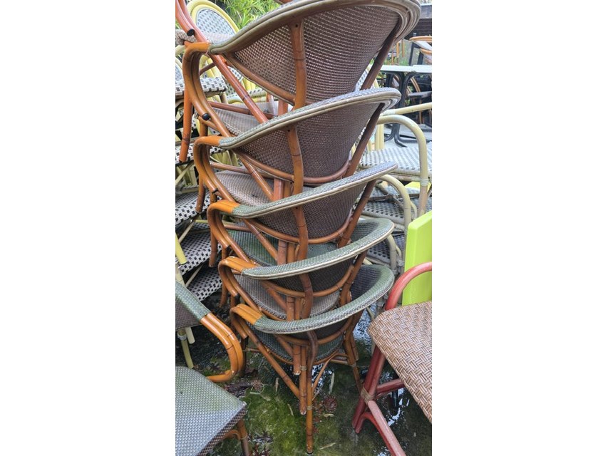 10 stuks terrasstoel hout-grijs, gebruikt uit verhuur, locatie Lauwe