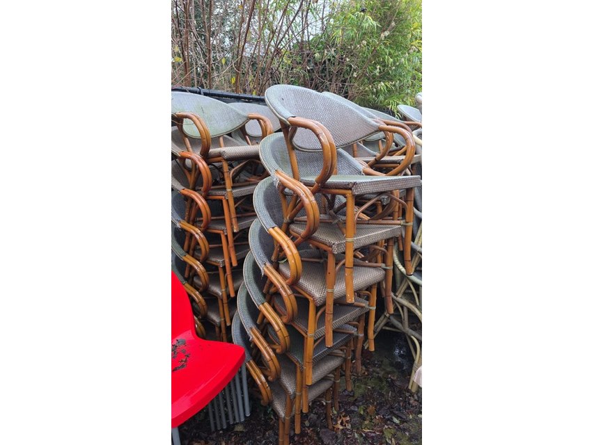 10 stuks terrasstoel hout-grijs, gebruikt uit verhuur, locatie Lauwe