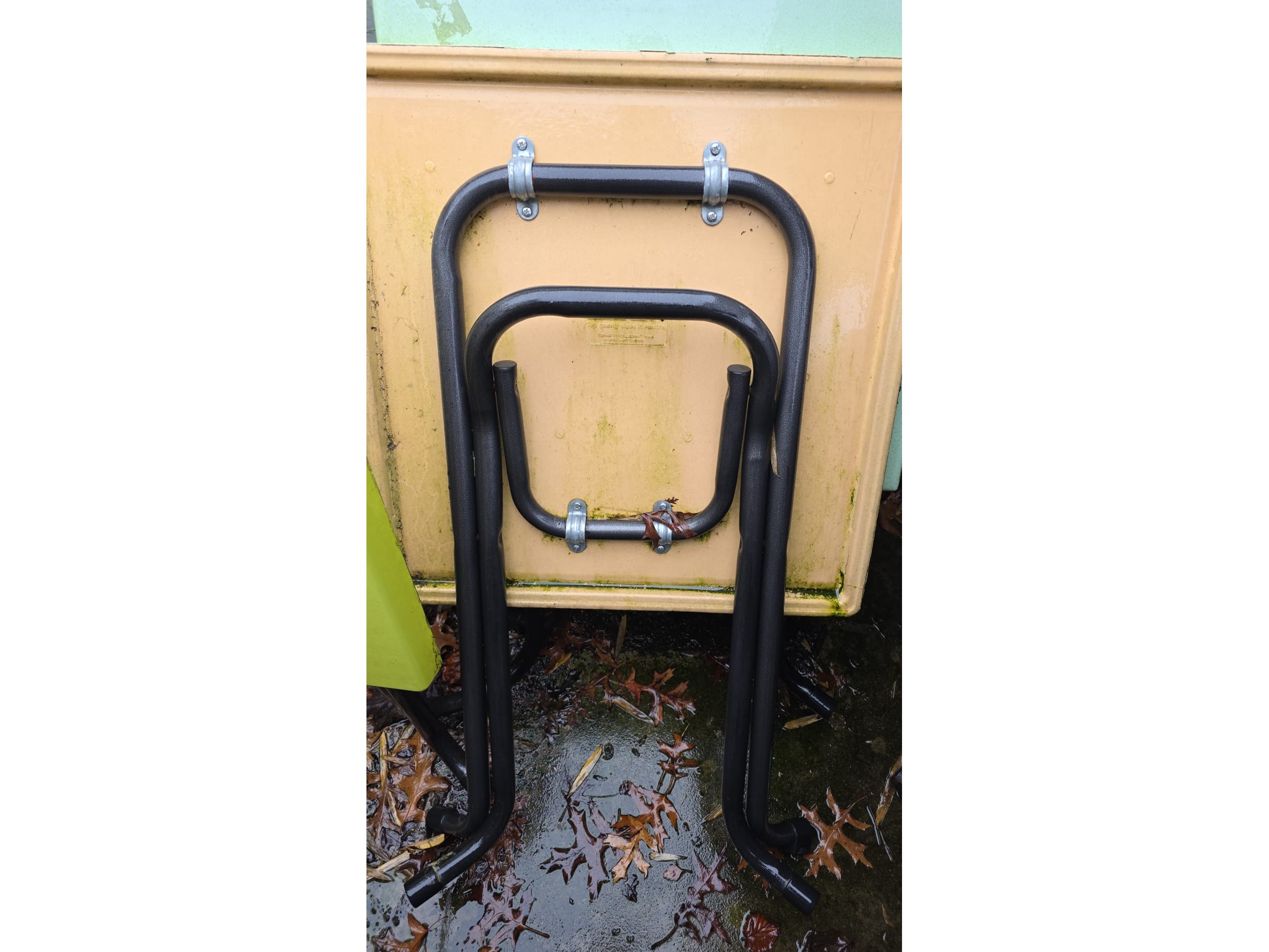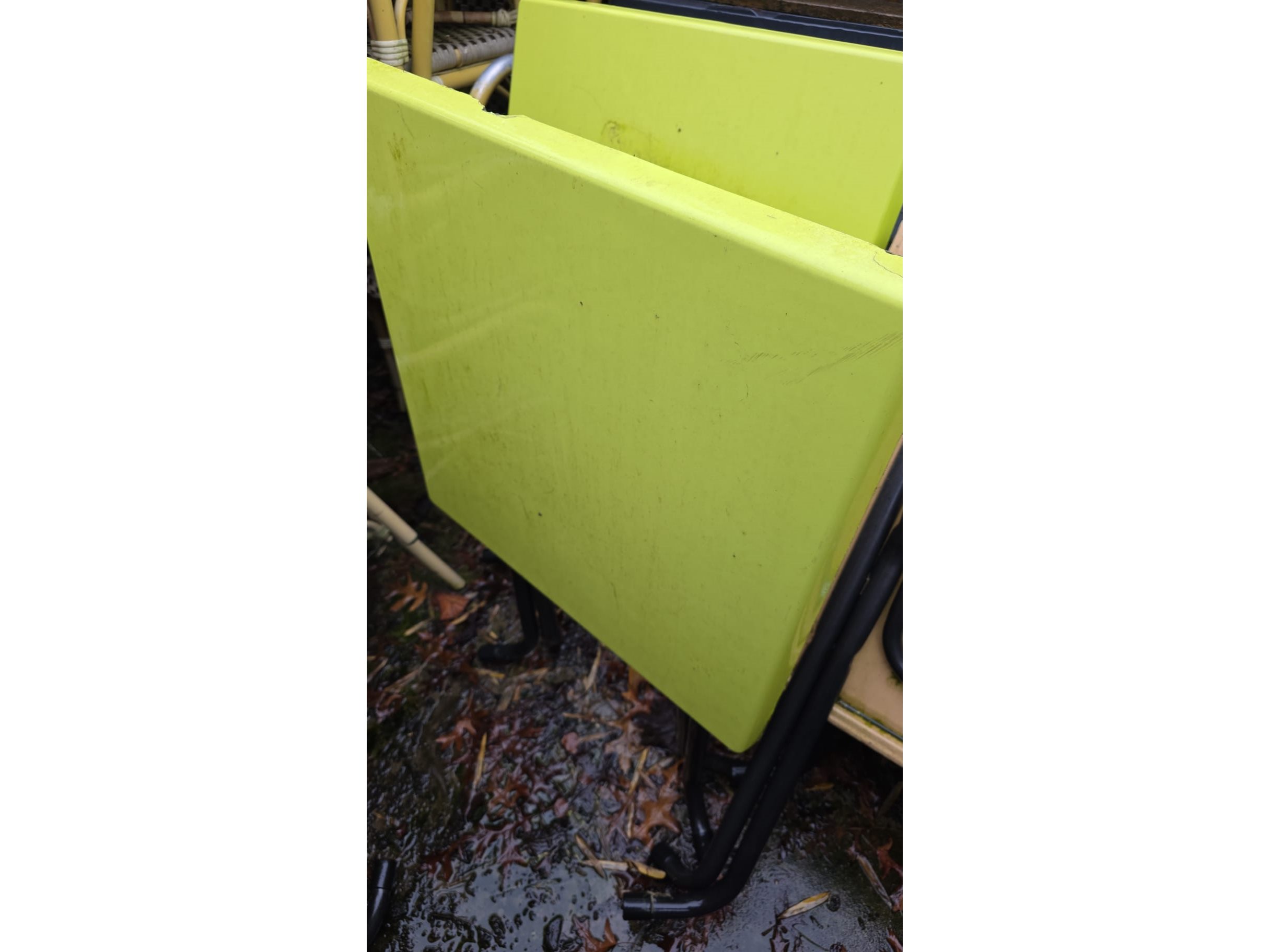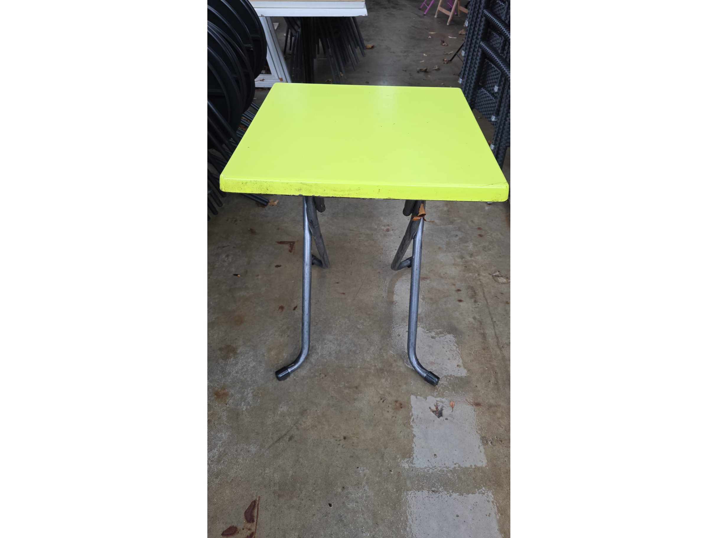 Lot van 6 gebruikte inklapbare terrastafels groen, locatie Lauwe
