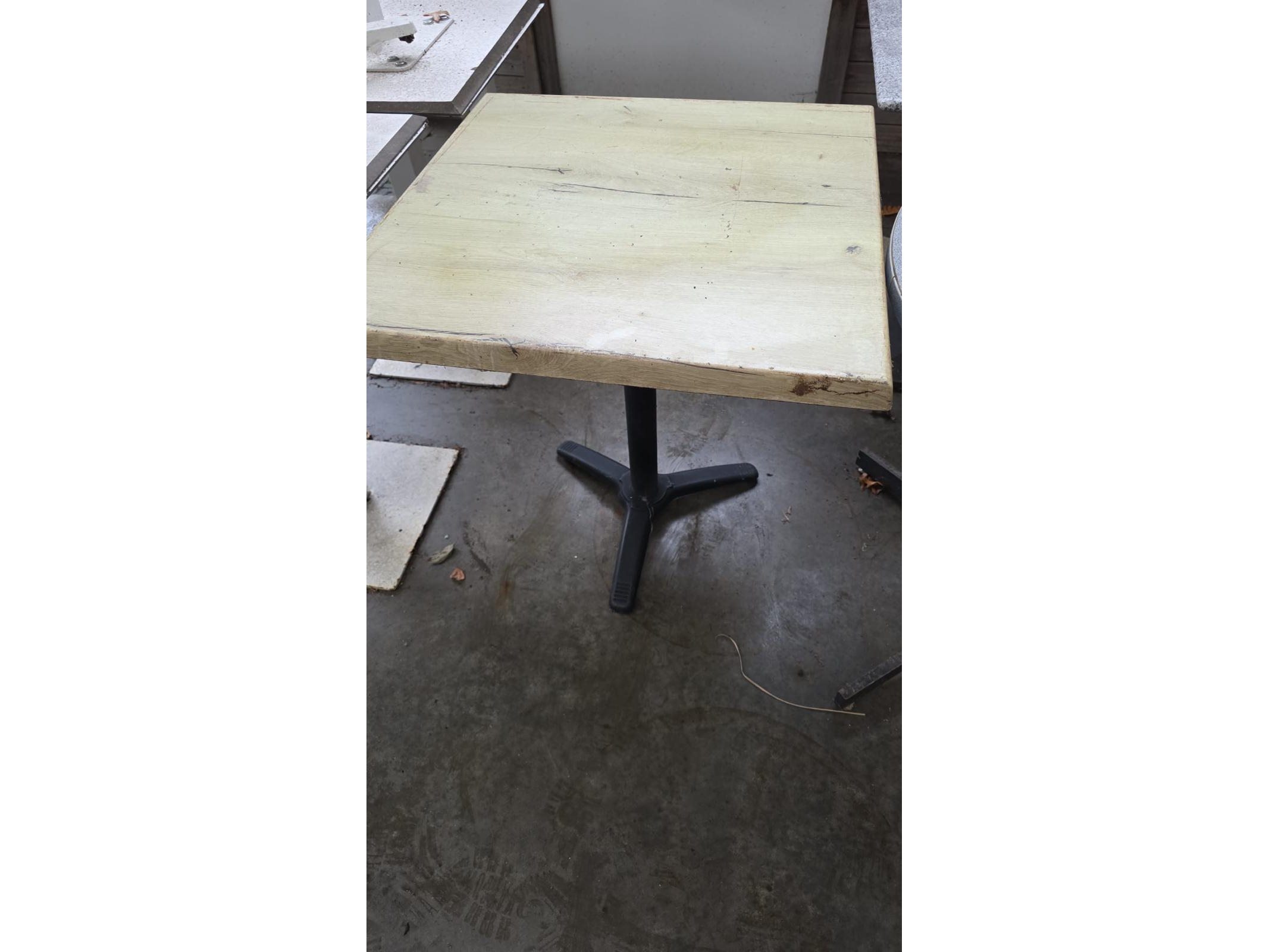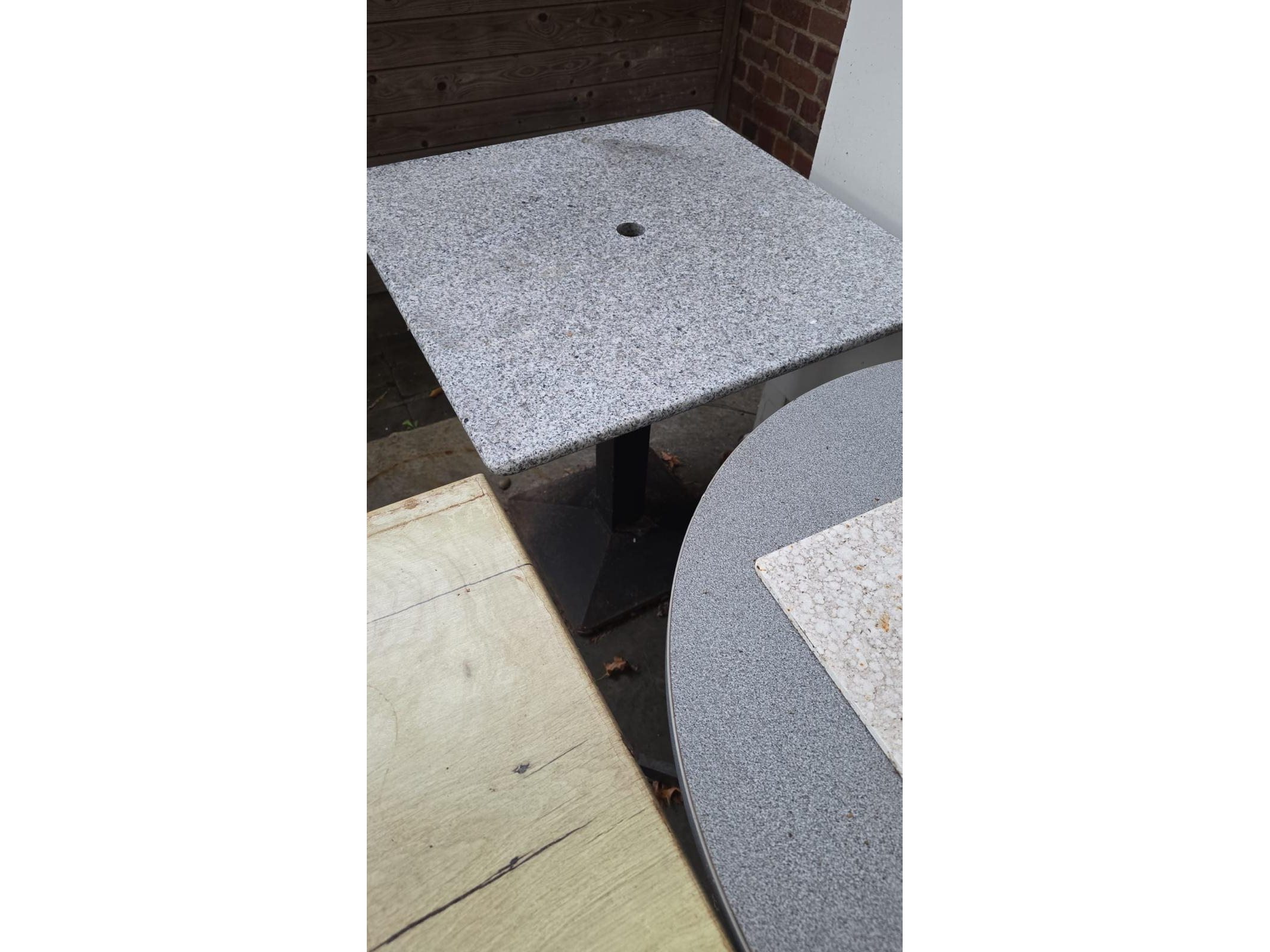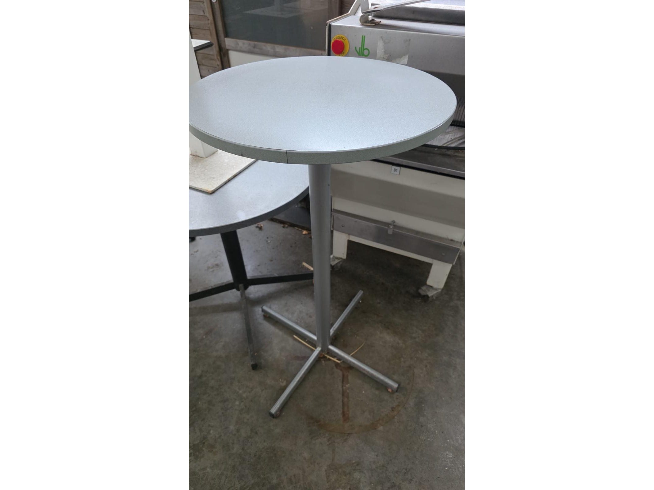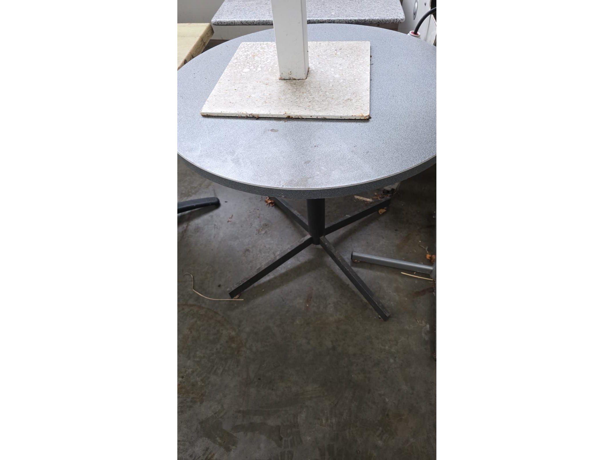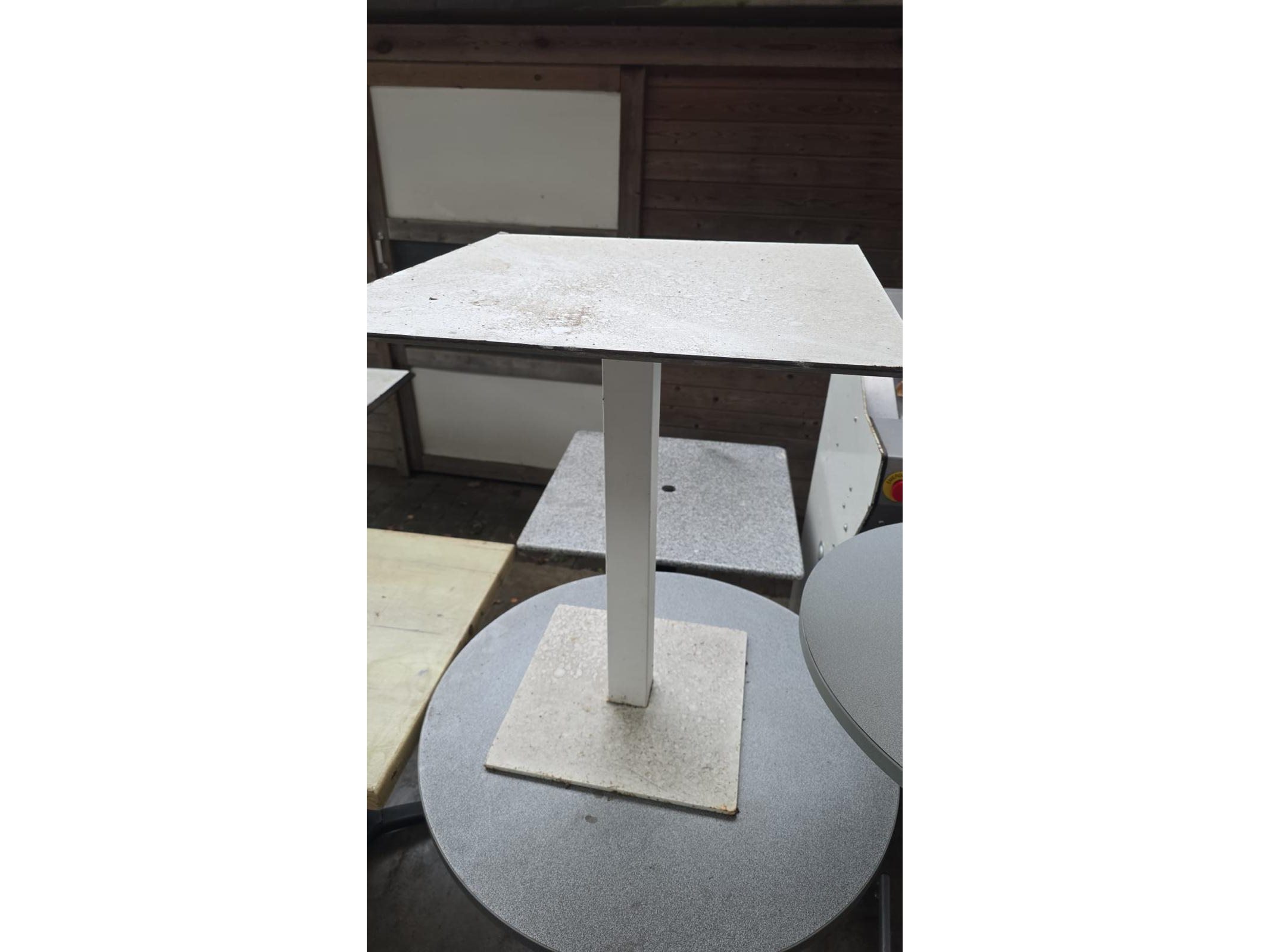 Lot van 4 diverse terastafels en 1x hoge bartafel, gebruikt, locatie Lauwe