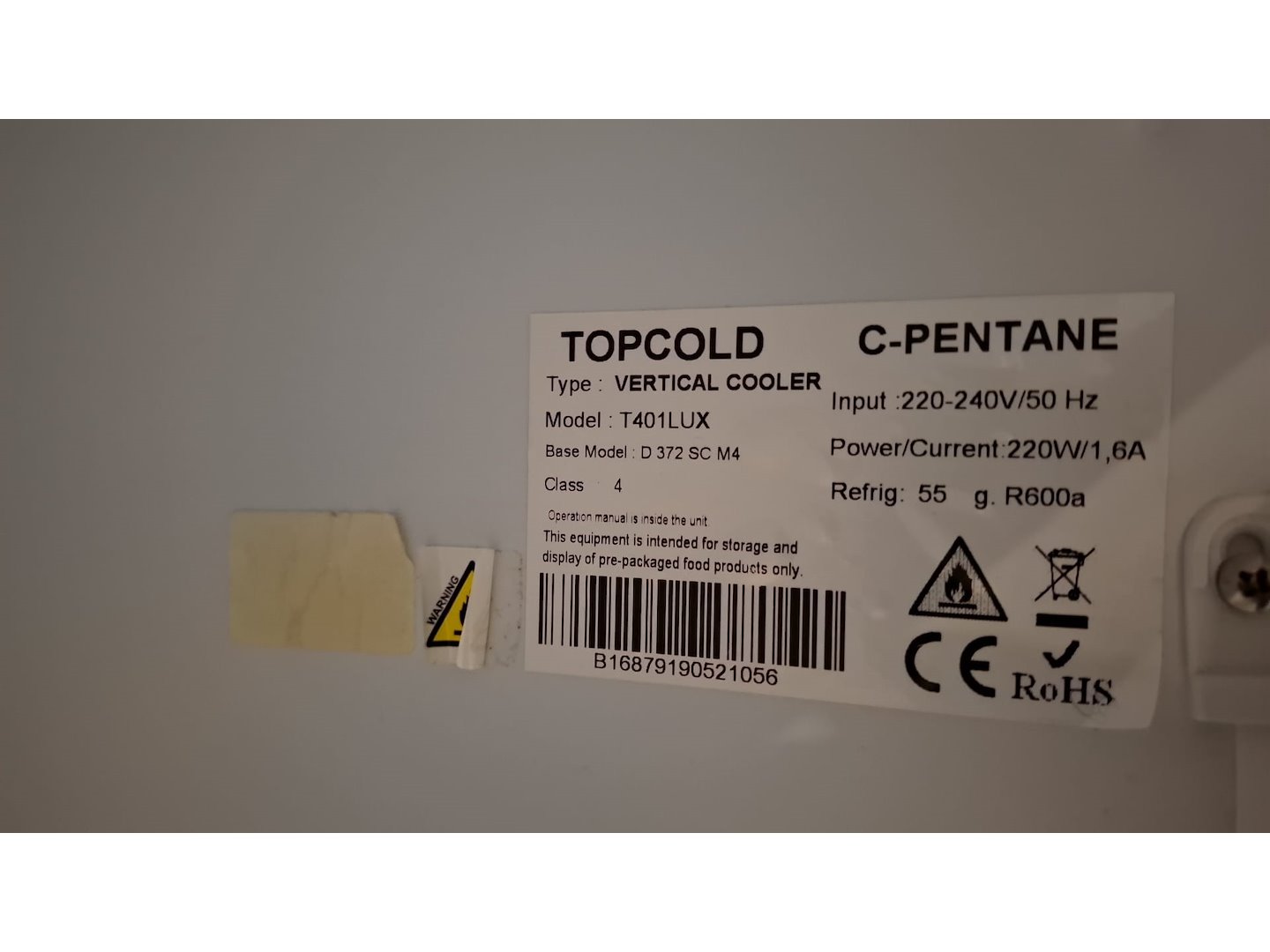 Topcold, met glasdeur, 185cmh, 60cmx60cm