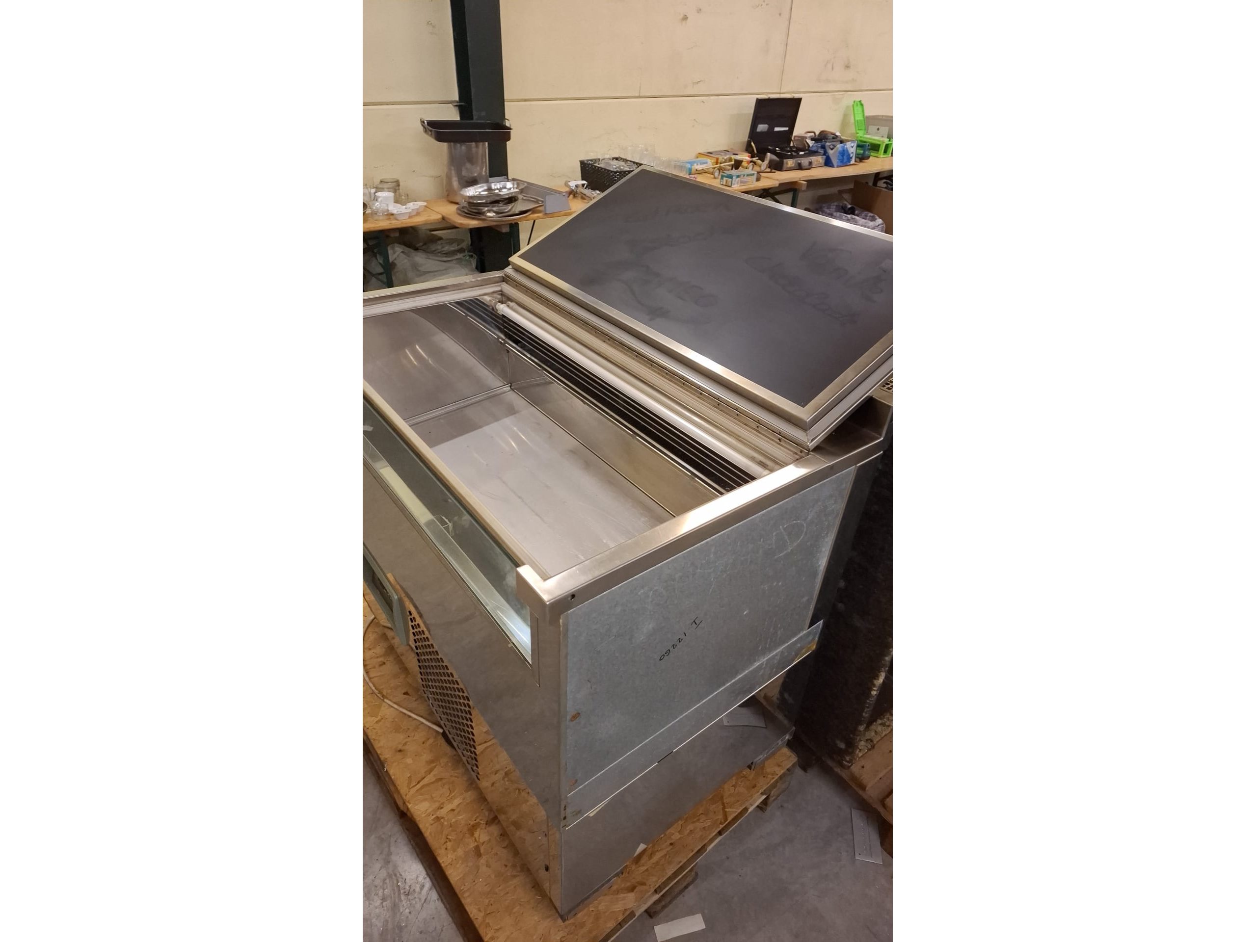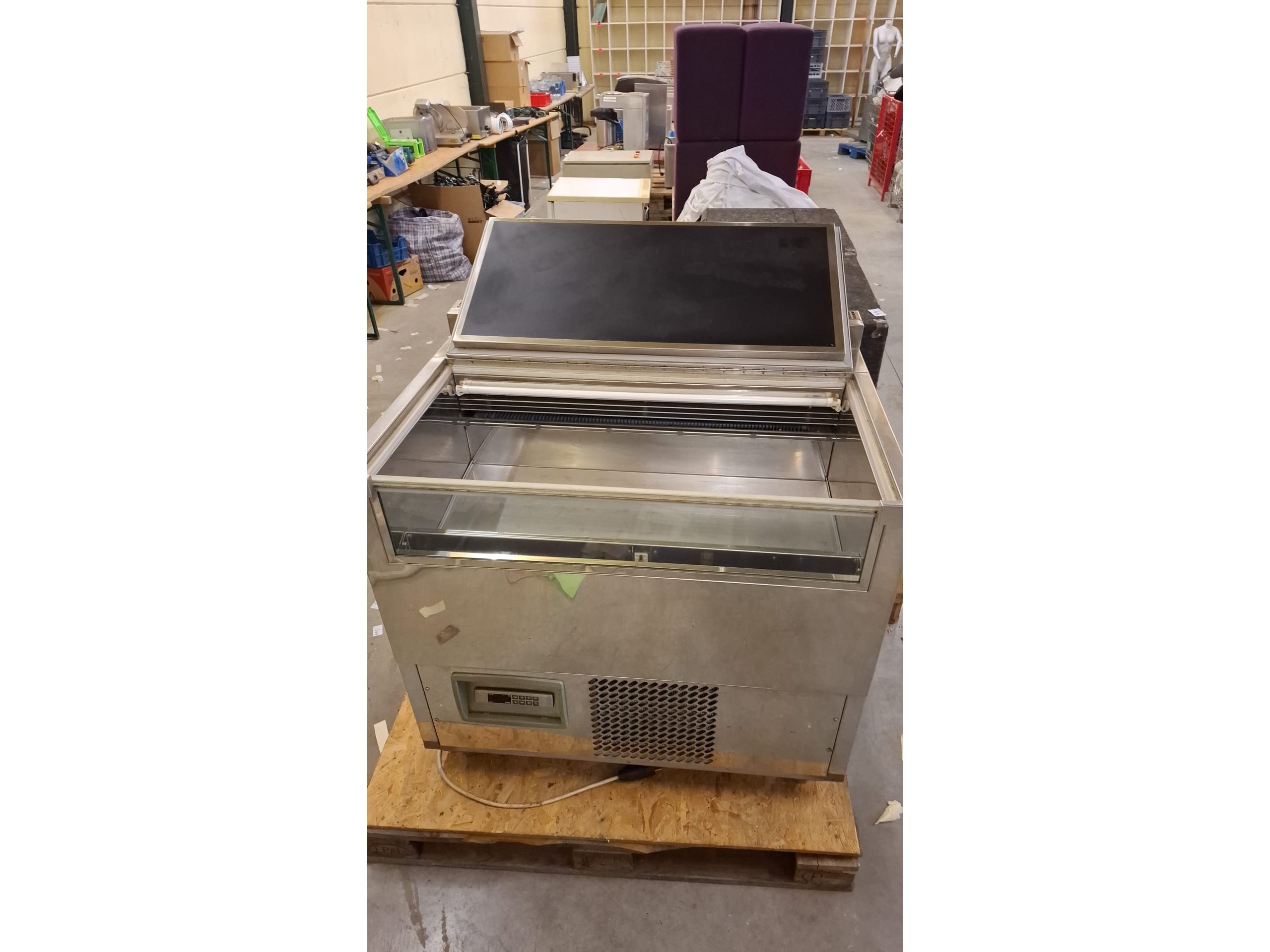 Afsluitbare ijsvitrine in rvs, 100cmB, 70cm D, 90cmH
