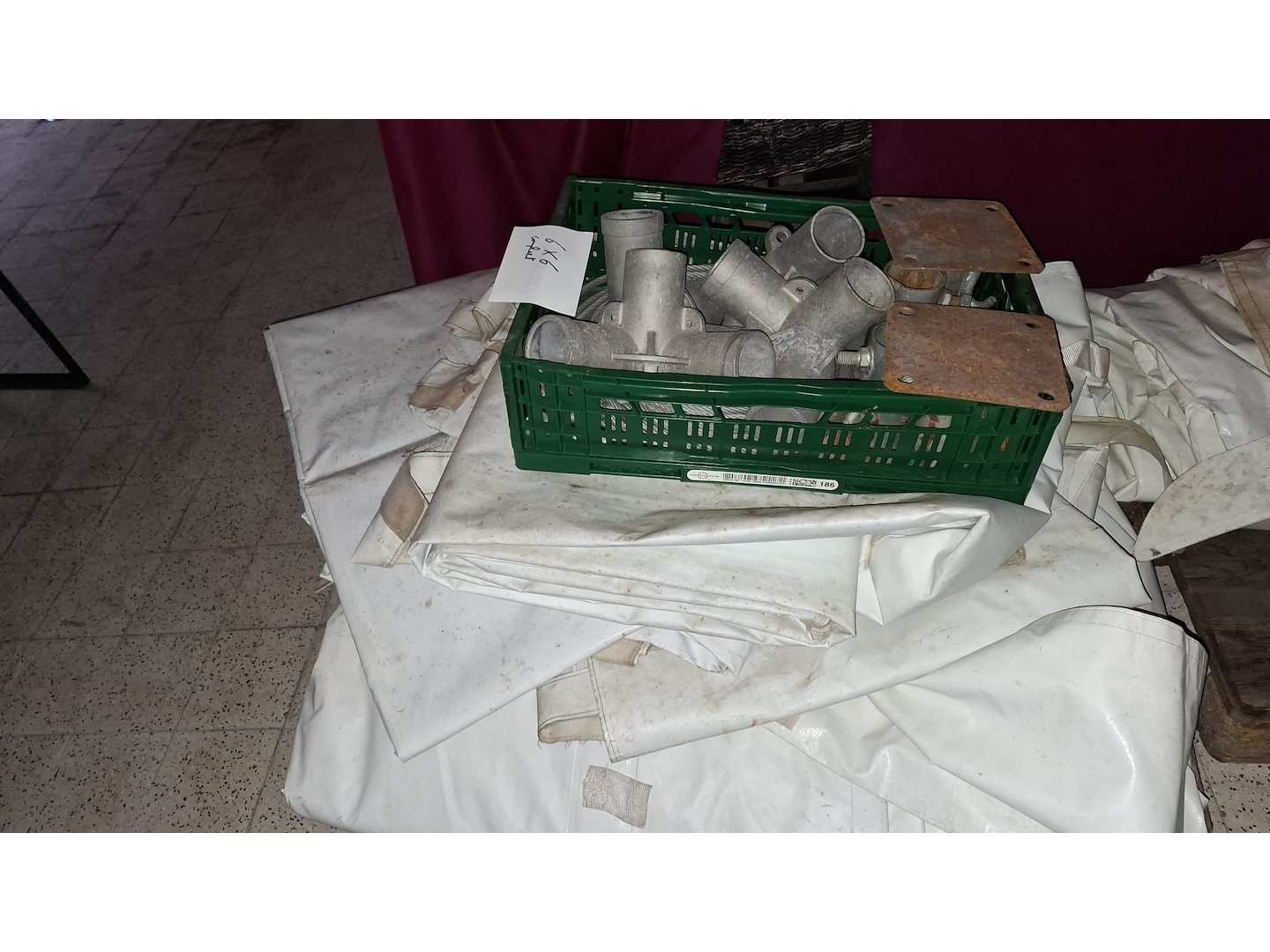 Merk : partyspace, aluminium constructie, zeilen m2 brandwerend. Zonder scheuren of gaten. Bestaande uit 1 x dakzeil en 4 x zijkant.