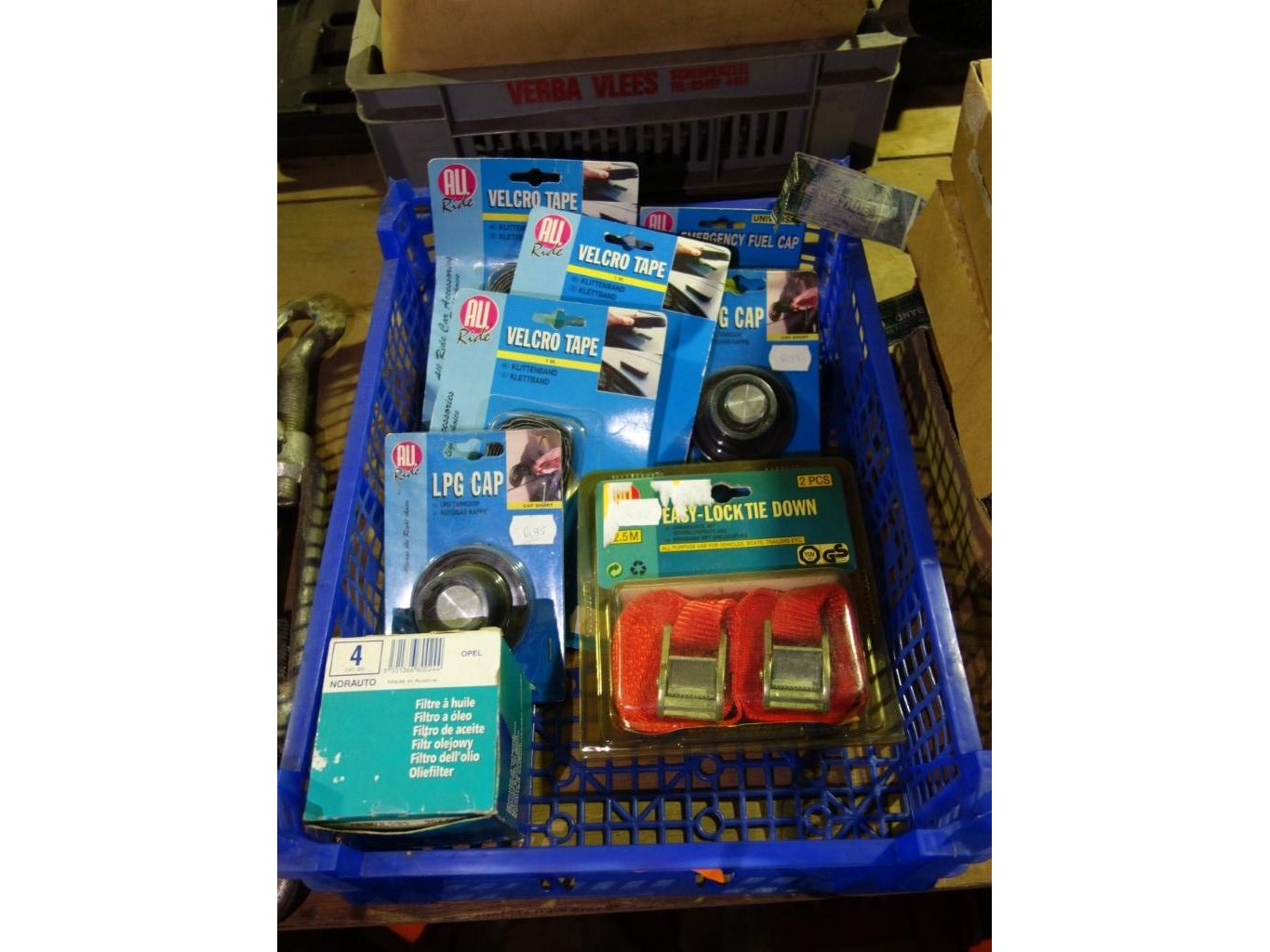 Bak met autoaccessoires
