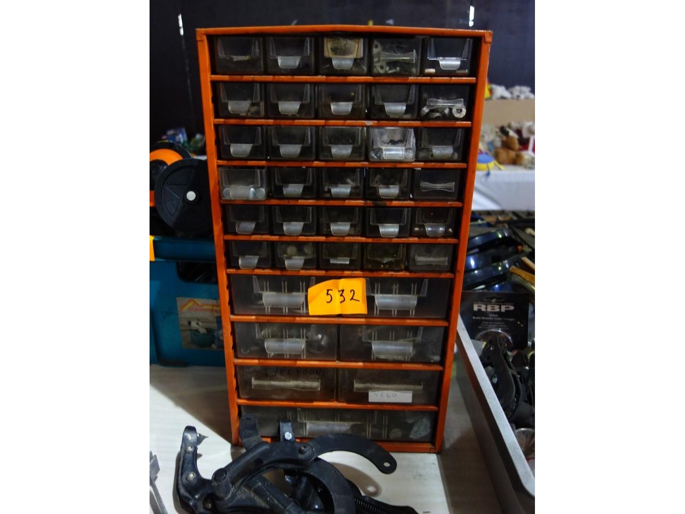 Bergkast met laden, gevuld met diversen voor de fiets