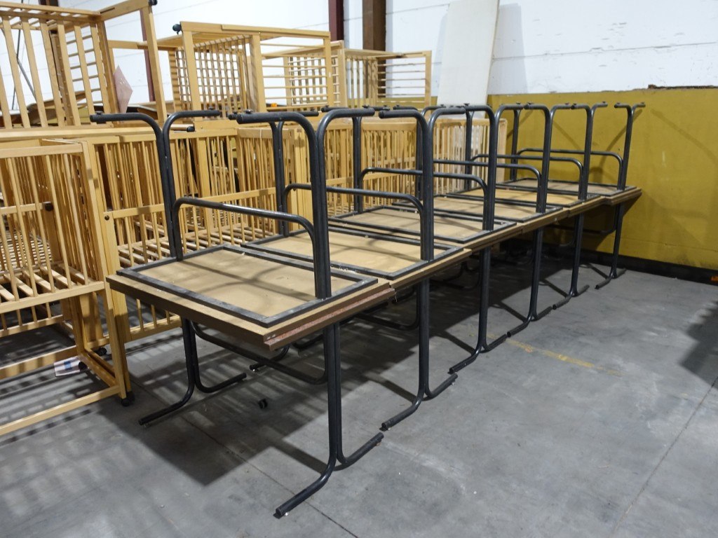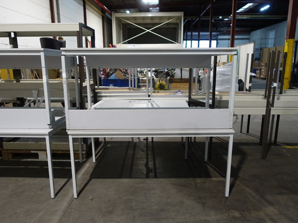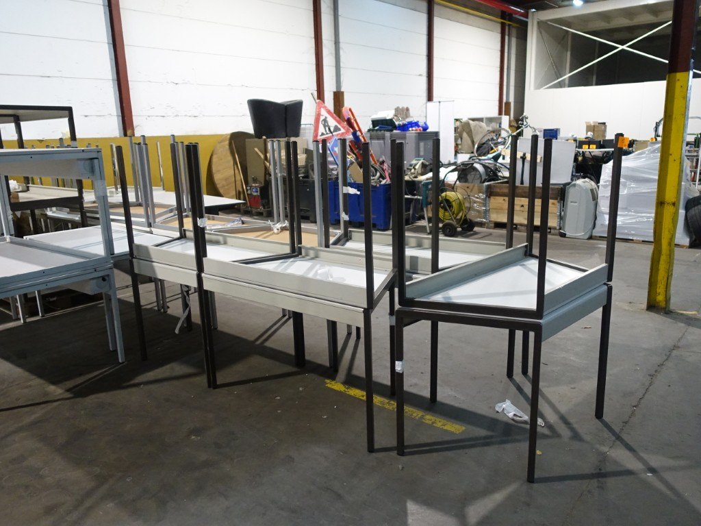 Metalen onderstel met houten blad<br /> locatie: A7 + A14