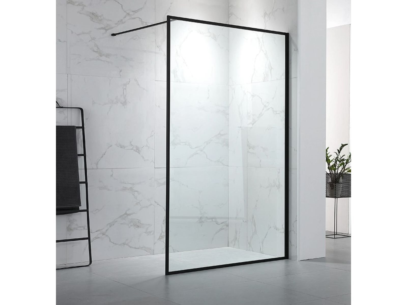 1 x 90 x 200 - Antikalkbehandeling - NANO-EASY CLEANING GLAS; B 860 x H 2000 mm - Mat zwart kader profiel breedte 25 mm - Mat zwart muur profiel breedte 30 mm - Veiligheidsglas Glasdikte 8 mm - 100 cm mat zwart stabilisatiestang inclusief - 90BCF