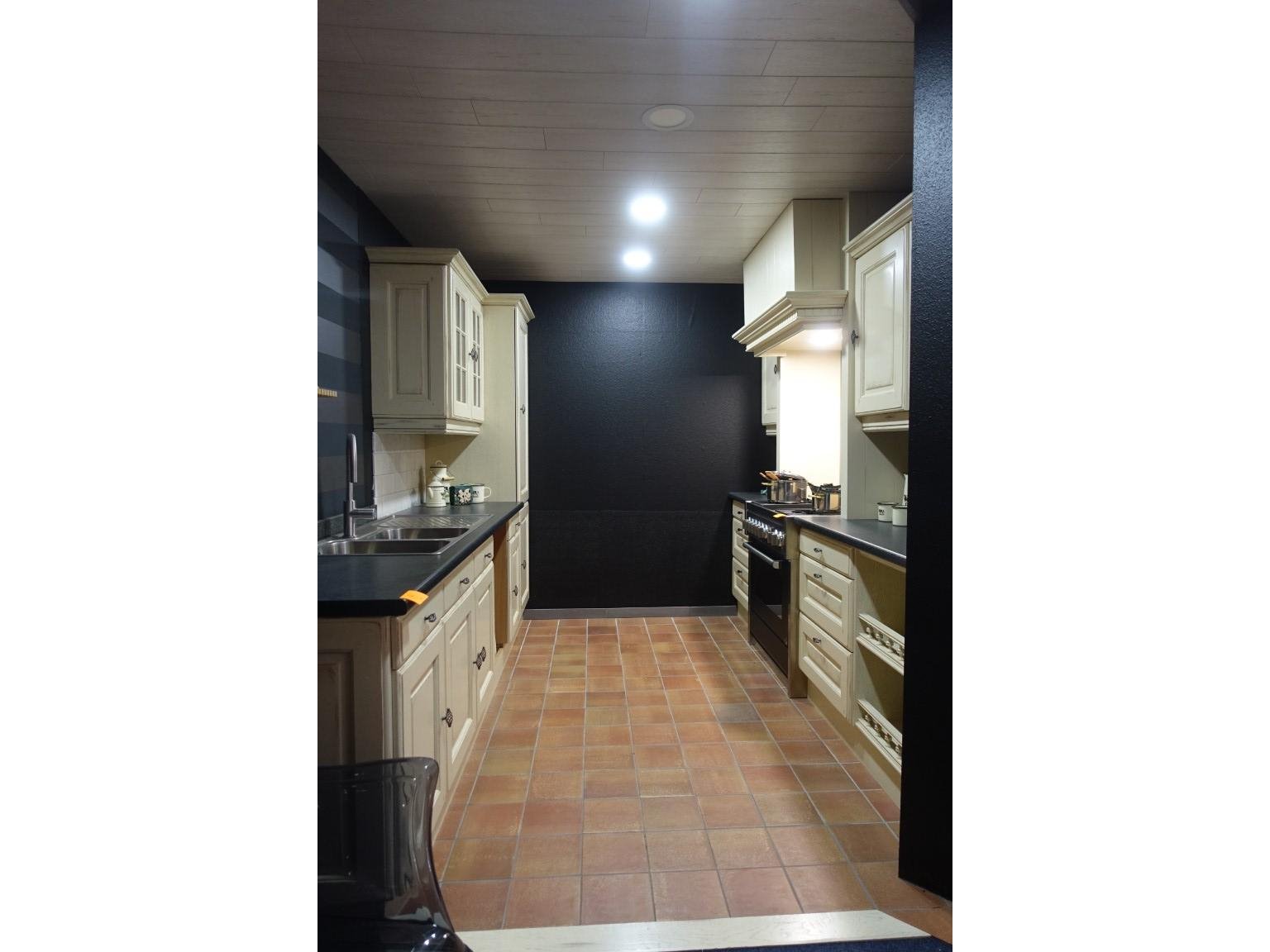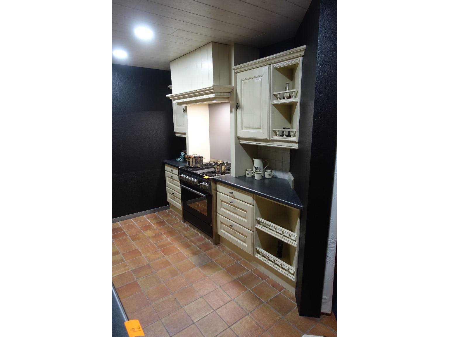 Afmetingen wand: (l: 3140 en 2800x60 x90cm), vv massieve fronten, inclusief toestellen Spoelbak Franke, kraan KWC, exclusief fornuis (lot 13)