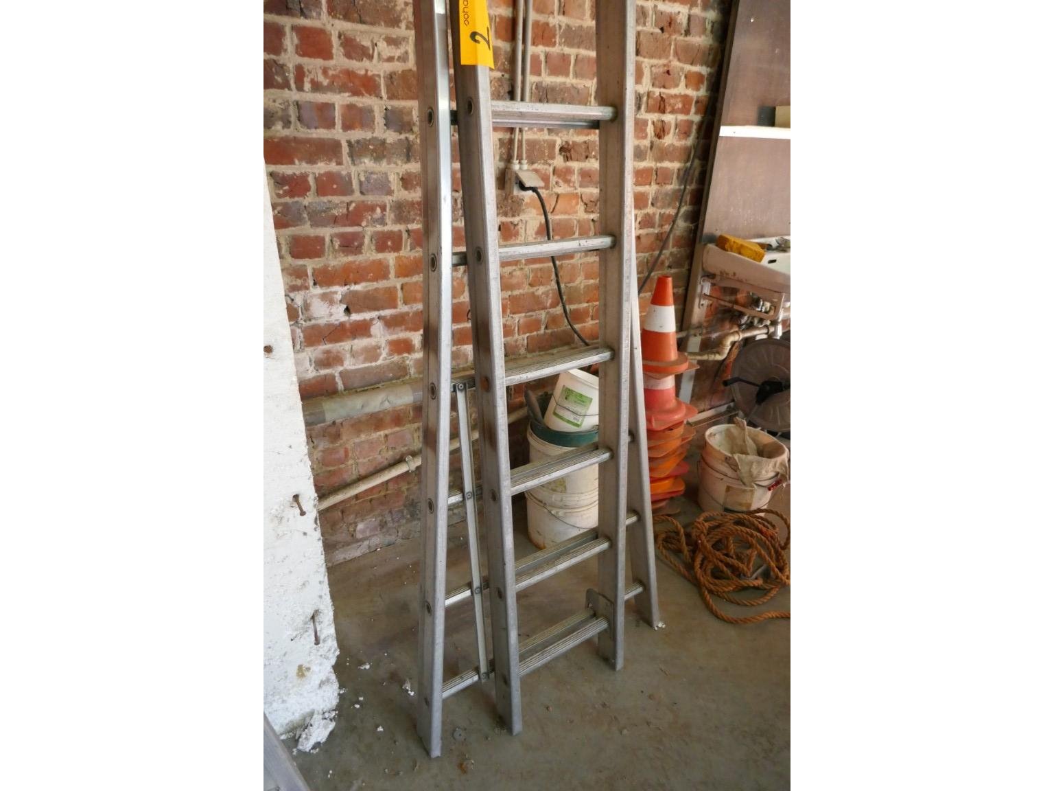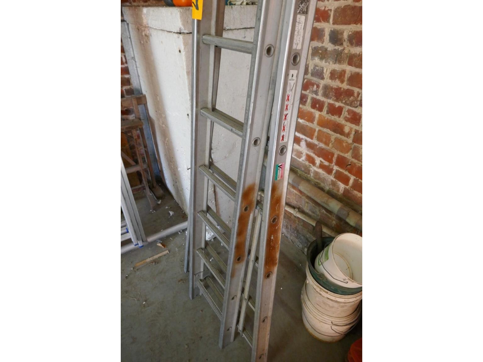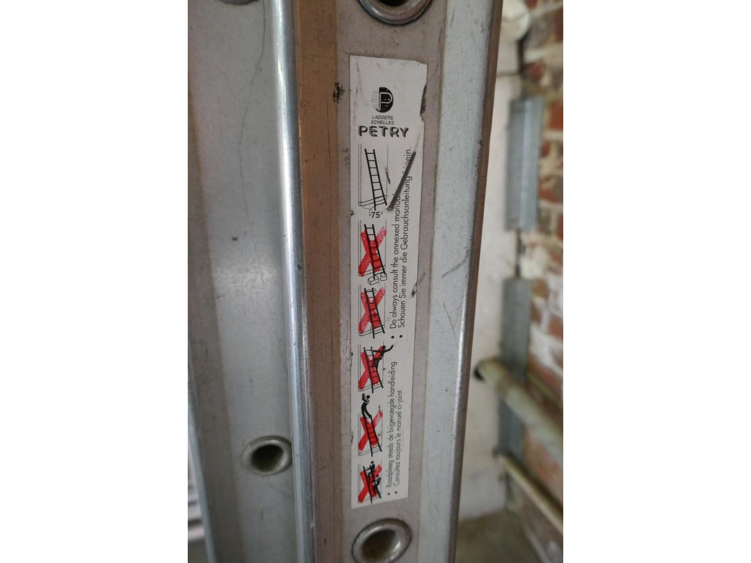 1 Alu dubbele opsteekladder, 2 x 20 sporten met wijd uitlopende basis<br /> *merk : PETRY <br /> *type : ozb2
