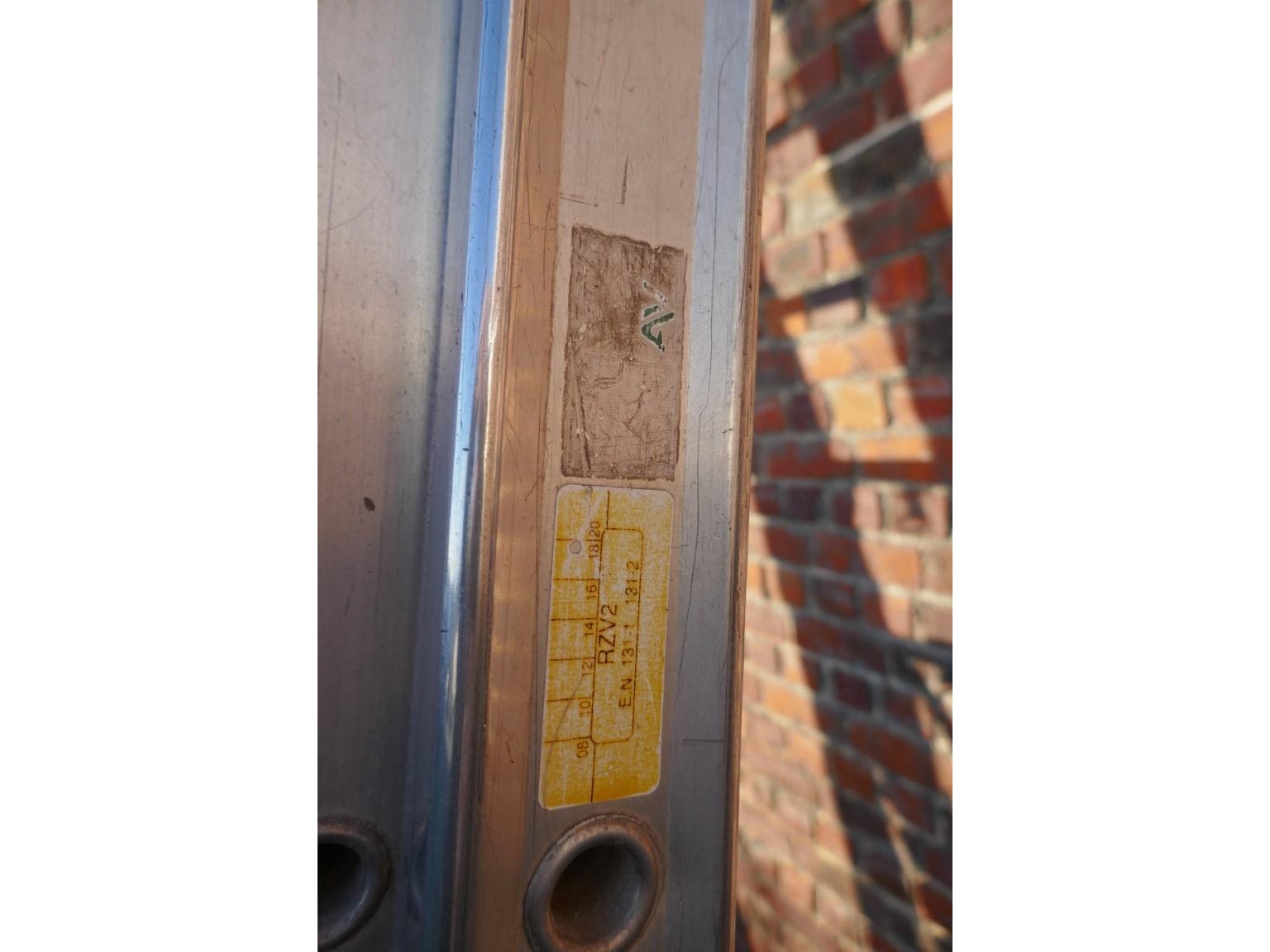 1 Alu dubbele opsteekladder, 2 x 18 sporten met wijd uitlopende basis en stabilisatiebalk<br /> *merk : PETRY <br /> *type : rzv2