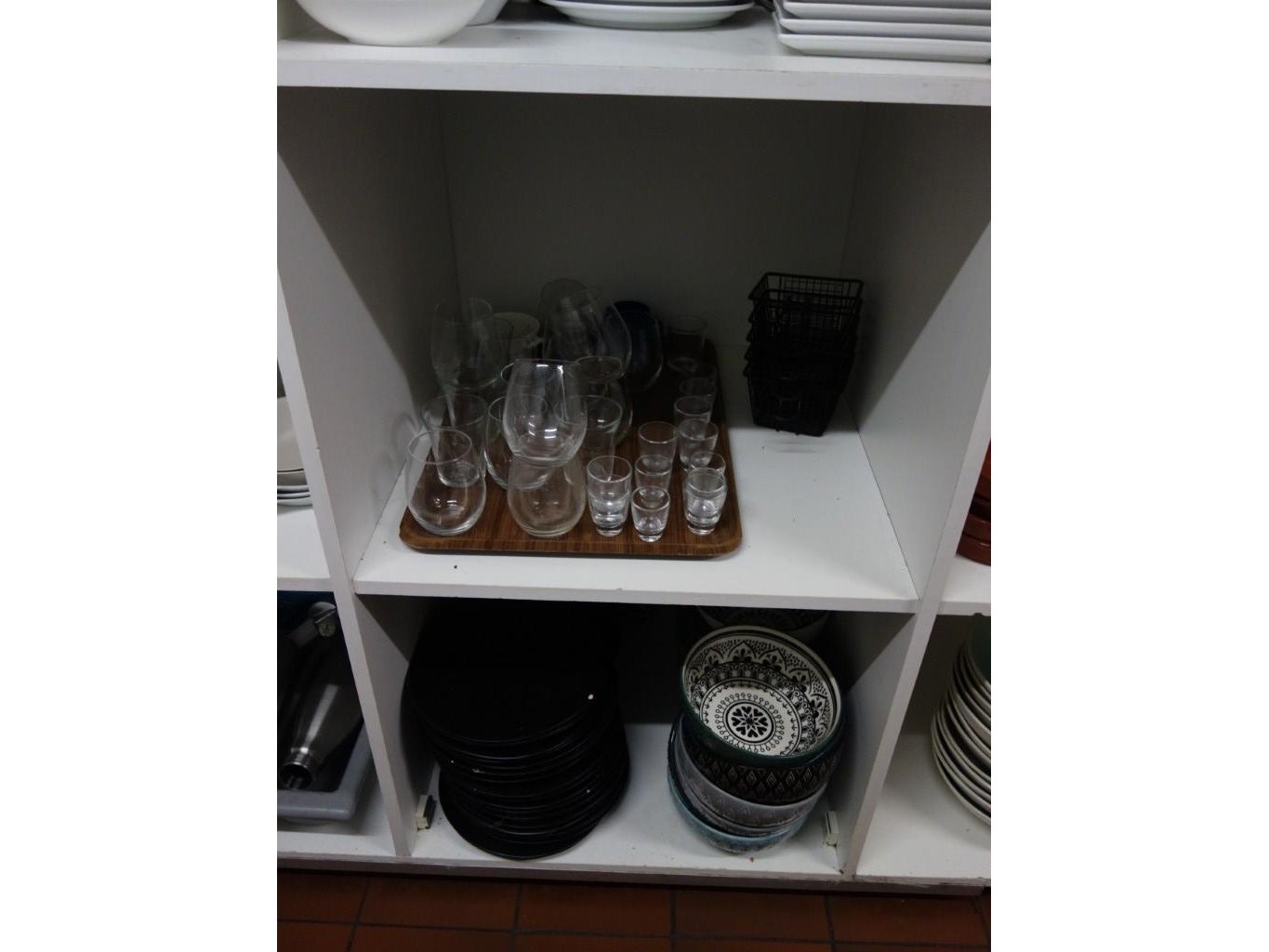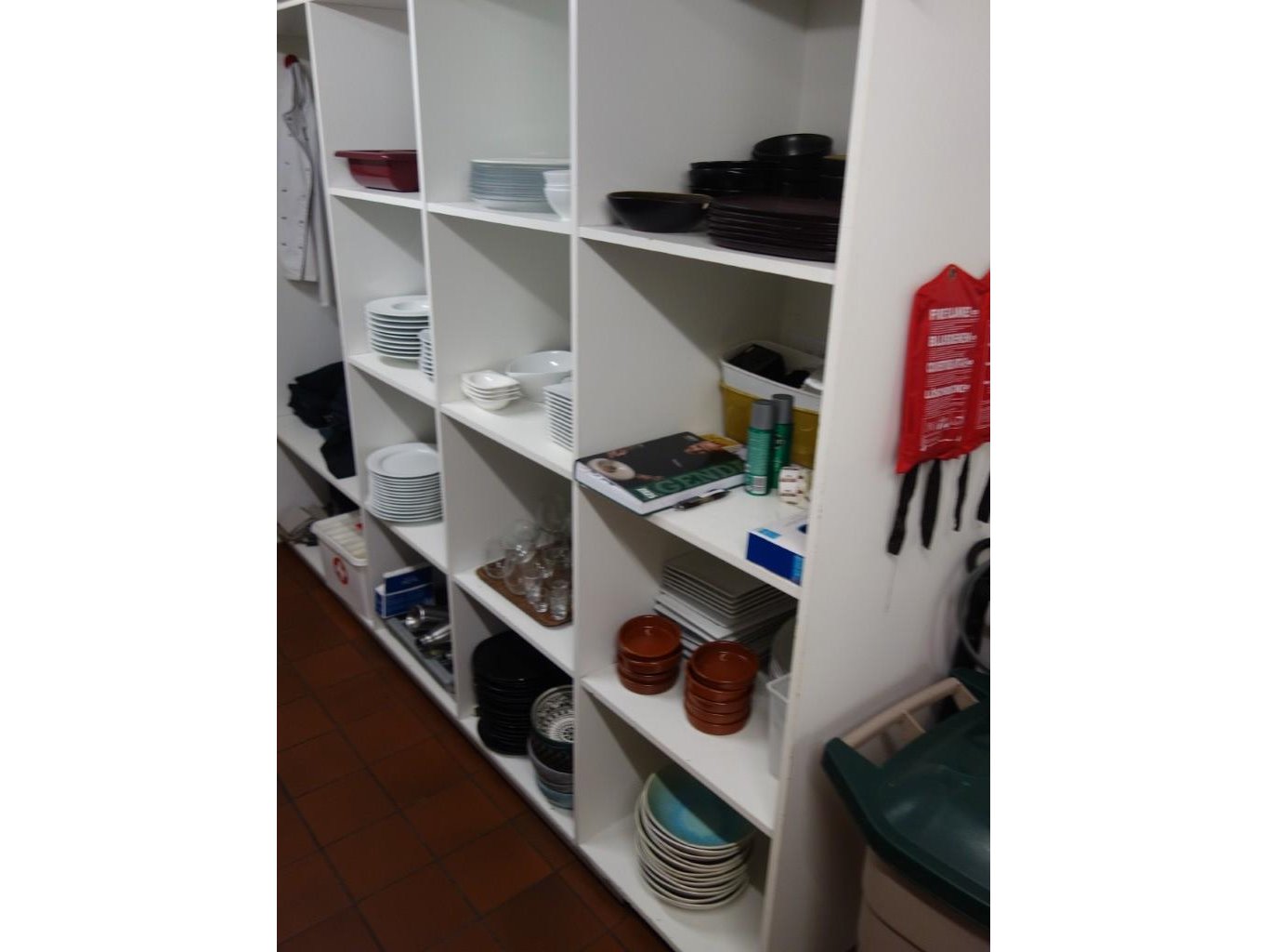 2x rek + inhoud oa: borden , serveerborden , snijplanken ,... vuilbakken , inhoud kast met borden , glazen , enz .. <br /> locatie: keuken