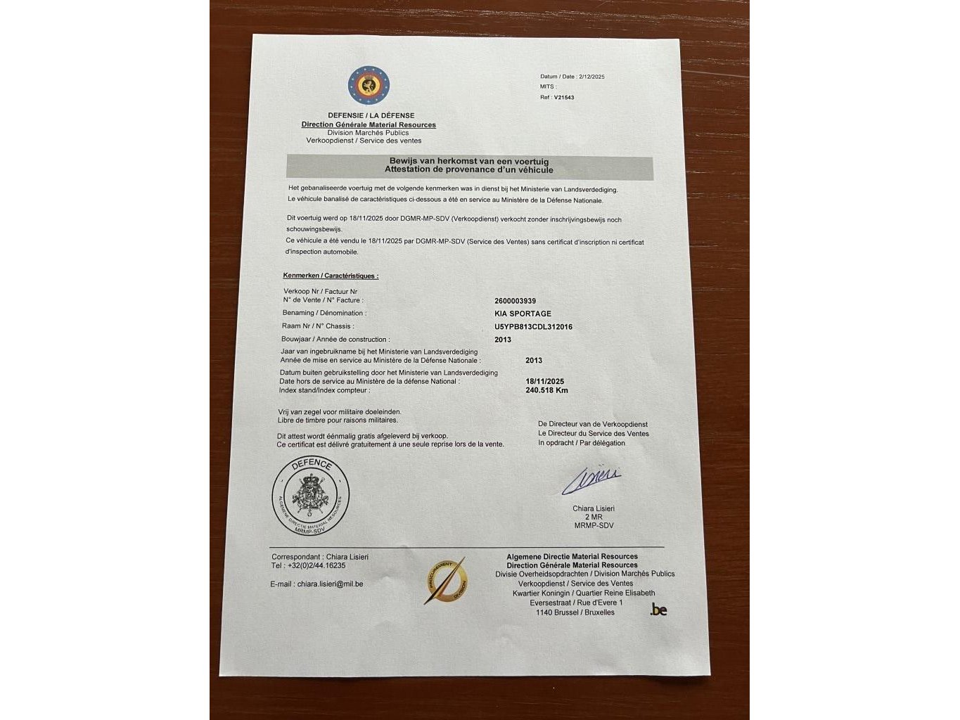 VIN: U5YPB813CDL312016<br /> Afgelezen Km stand: 240518 km<br /> Brandstof: Diesel<br /> Documenten aanwezig.<br /> Sleutel aanwezig<br /> Auto bestemd voor professionele autosector.<br /> BTW op marge