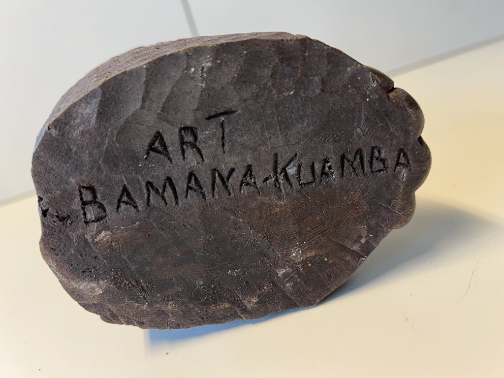 Massief beeld met inscriptie