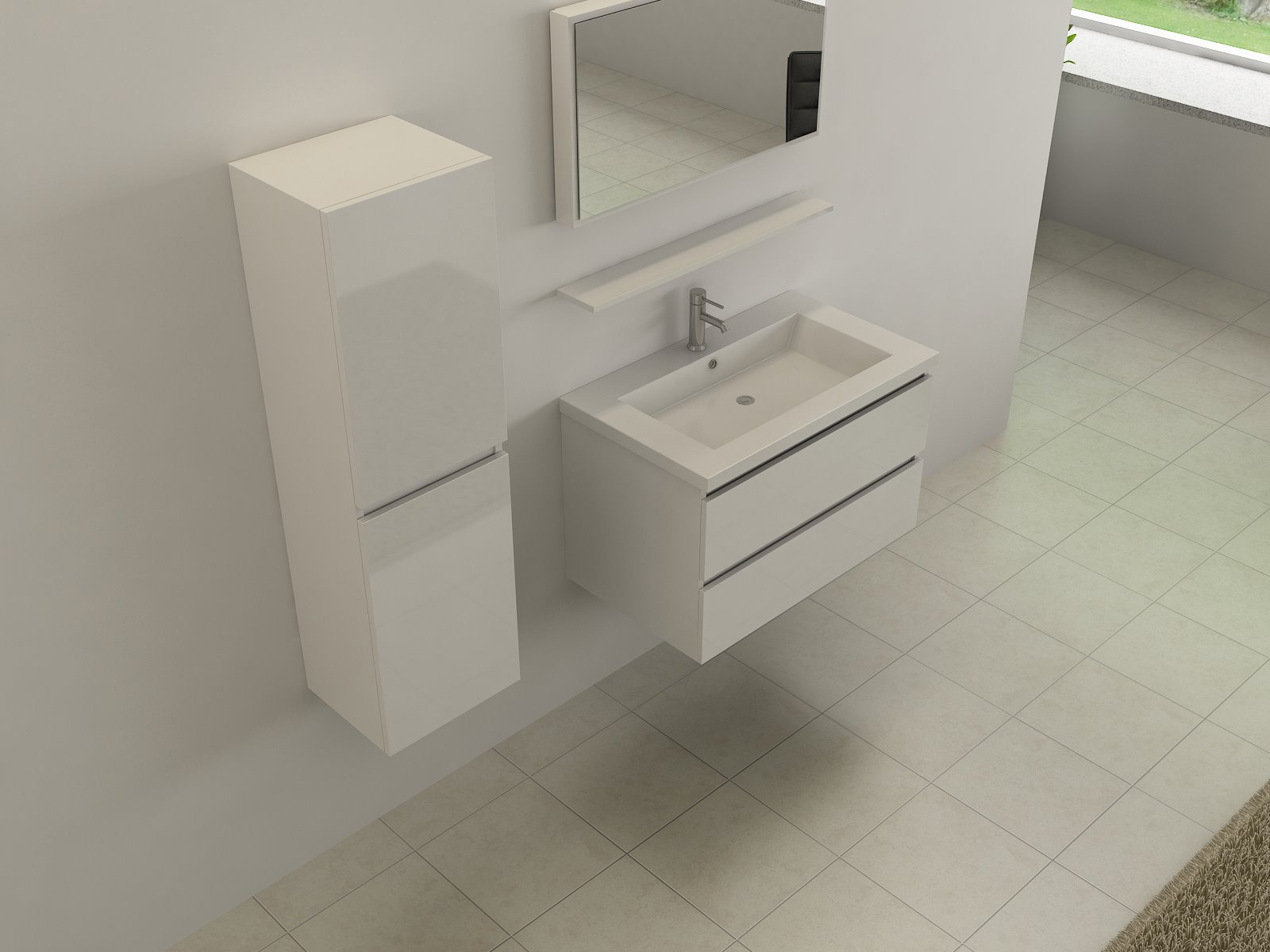 Aantal:1 <br /> Merk:Vonato <br /> Productnaam:Badkamermeubel <br /> Type:HAVIKLUXWM-2-60 <br /> Model:1-persoons badkamermeubel 60 cm <br /> Kranen:Inclusief kraan <br /> Materiaal: 18 mm MFC <br /> Afmetingen 2 persoons set:<br /> 1 x Wastafelmeubel - 600x460x520mm <br /> 1 x wasbak – 600x460x160mm (rand 3 cm) <br /> 1 x Zijkast - 1500x350x350mm <br /> 1 x Spiegelkast - 600x450x180mm <br /> <br /> Kleur:Hoogglans wit <br /> Voorzien van: Kraan inclusief pop-up afvoer – 2 lades - Softclose systeem op deurtjes en lades - Giethars wasbakken – LED verlichting boven de spiegel – Spiegelkast met 2 deurtjes en 1 plank - Voorgemonteerde zijkast en wastafelmeubel. <br /> <br /> Conditie: Nieuw