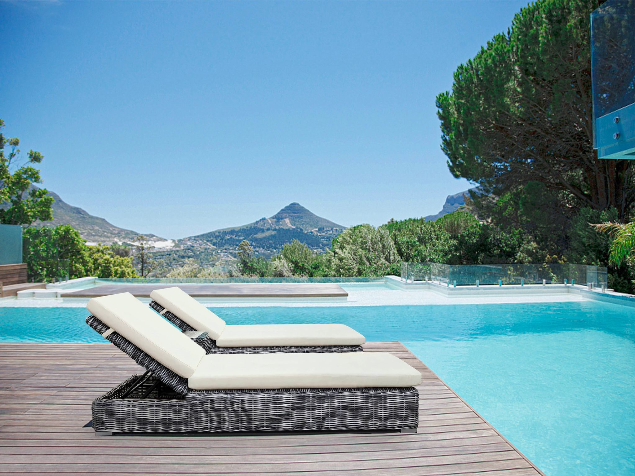 Aantal:1 <br /> Merk:Vonato <br /> Productnaam:Ligbedden <br /> Type:Sunbed-014 <br /> Model:3-delig <br /> Kleur:Zwart wicker met crème kussens <br /> Afmeting:3-delige set: <br /> 2 * Ligbed - 1980x650x350mm <br /> 1 * Koffietafel - 430x430x430mm - Helder glazen tafelblad <br /> <br /> Frame:Gepoedercoat aluminium frame - garandeert een langere levensduur <br /> Voorzien van:Waterafstotende kussens - weerbestendig vlechtwerk <br /> <br /> Conditie: Nieuw