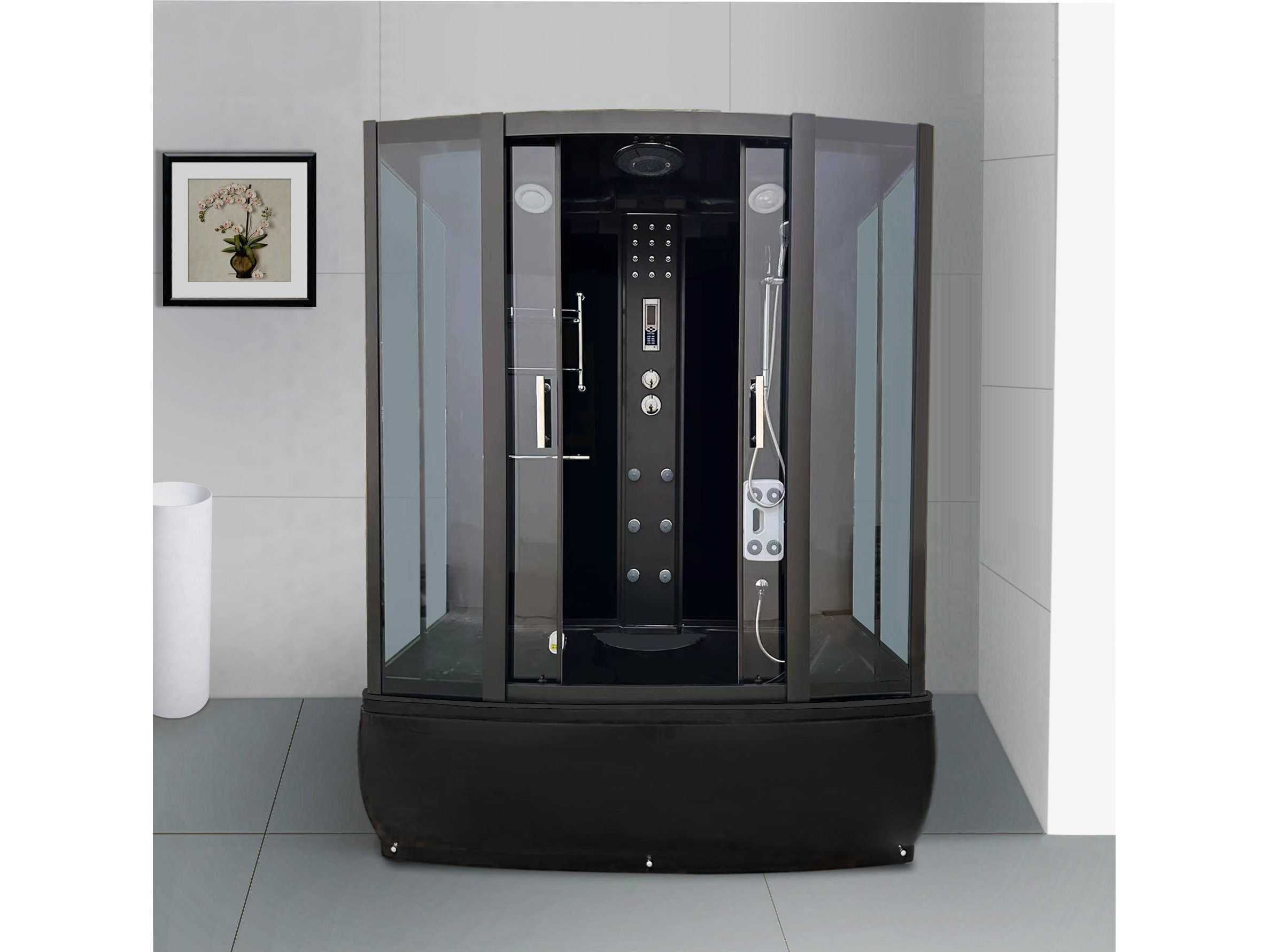 Aantal: 1 <br /> Merk: Vonato <br /> Productnaam: Stoomcabine met massagebad <br /> Type: LR8034B <br /> Model: Stoomcabine met massagebad - Rechthoekig <br /> Afmeting: 1700x900x2200mm <br /> Kleur: Zwarte cabine met zwarte bad <br /> Aantal jets: De cabine heeft waterjets die zorgen voor een aangename rugmassage <br /> Voorzien van: - Gekleurd veiligheidsglas wat zorgt voor extra veiligheid in de stoomcabine. Dankzij het veiligheidsglas hoef u zich nooit zorgen te maken over scherven op de vloer want het is stootbestendig en sterk. Mocht het toch gebeuren dat het glas barst, dan zal het uiteenvallen in onscherpe stukjes.- Voorzien van 2 schuifdeuren- Topverlichting- Sfeerverlichting - Ventilator - Handdouche - Topdouche - Functie voor een aangename voetmassage - Handdoekrekje met planchet - Zeep en shampoo dispenser - Aroma therapie: vul de aromahouder met uw favoriete aroma’s zoals het welbekende eucalyptus om heerlijke geuren te verspreiden tijdens het stomen - Cabine staat op verstelpoten die eenvoudig zijn te stellen in hoogte <br /> <br /> Conditie: Nieuw <br /> Ter waarde van: €3.450,00