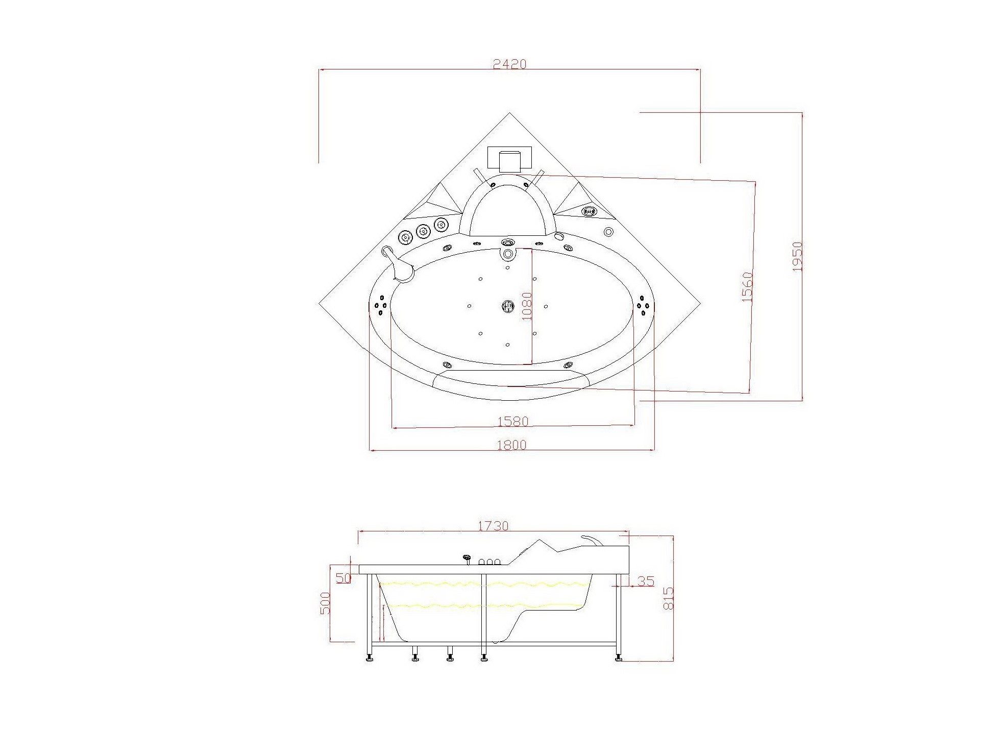 Aantal:1 <br /> Merk:Vonato <br /> Productnaam:Massagebad <br /> Type:NR1701W <br /> Model:Hoekbad <br /> Afmeting:1725x1725x780mm <br /> Kleur:Hoogglans wit <br /> Waterjets:4 grote- en 8 normale waterjets - 16 airbubble jets <br /> <br /> Voorzien van:Gegalvaniseerd stalen frame - LED-verlichting (7 stuks) - Lucht- en waterpomp - Control Panel - RVS Kraan - Handdouche - Water circulatie <br /> <br /> Conditie: Nieuw <br /> Ter waarde van: € 4.695,00