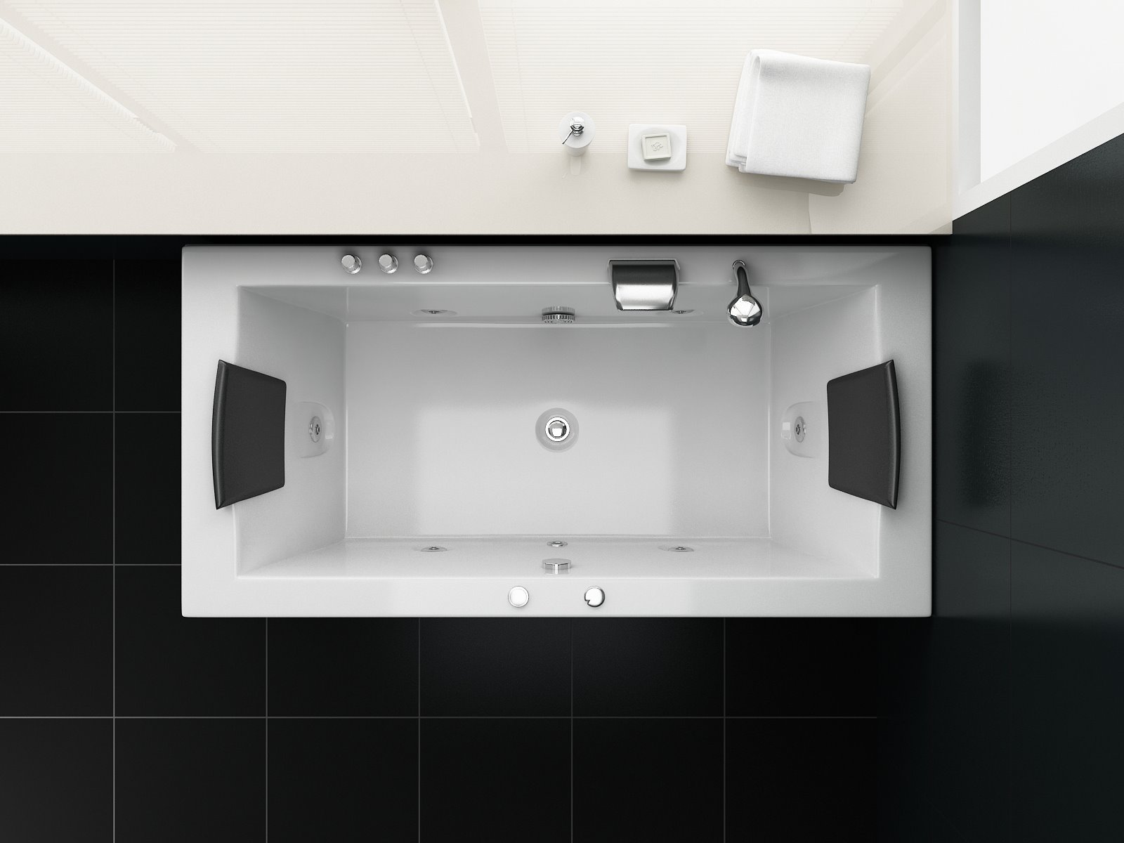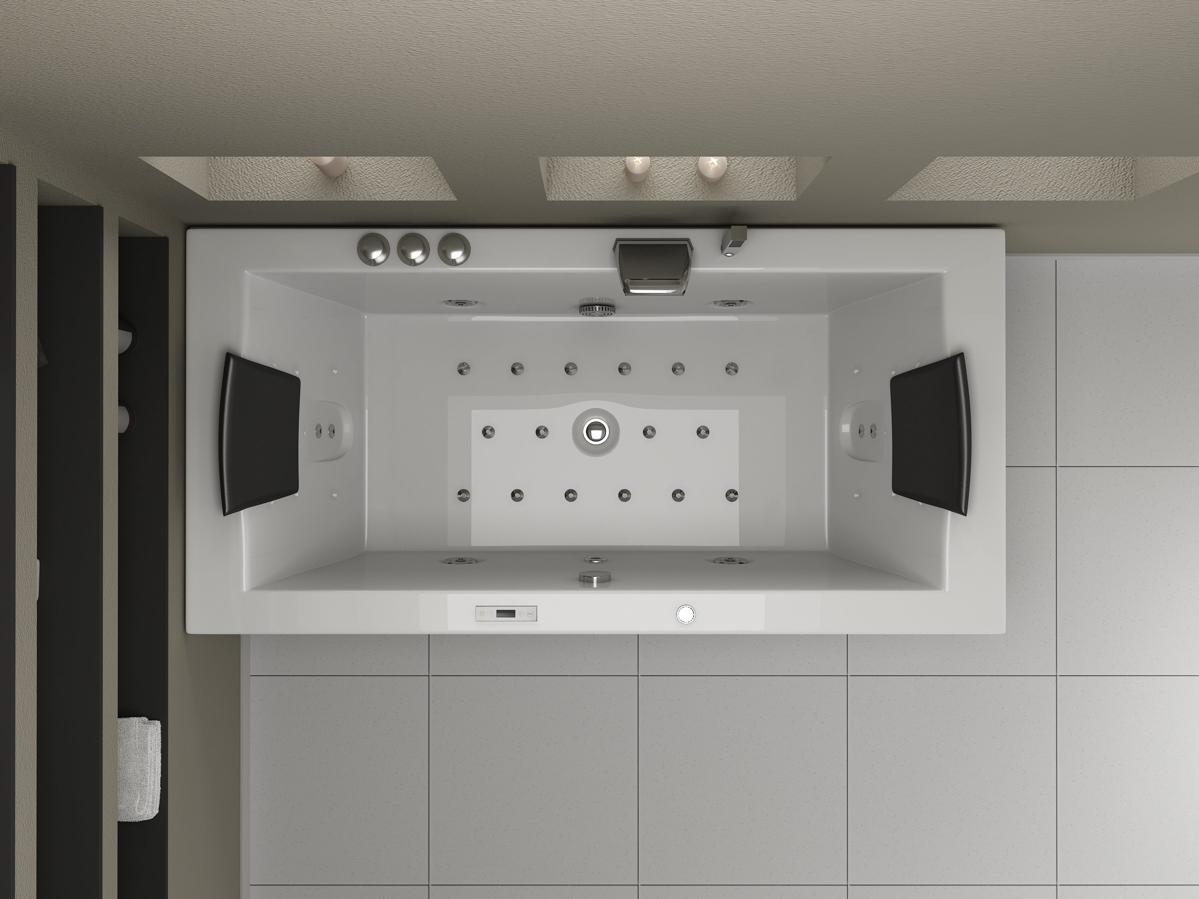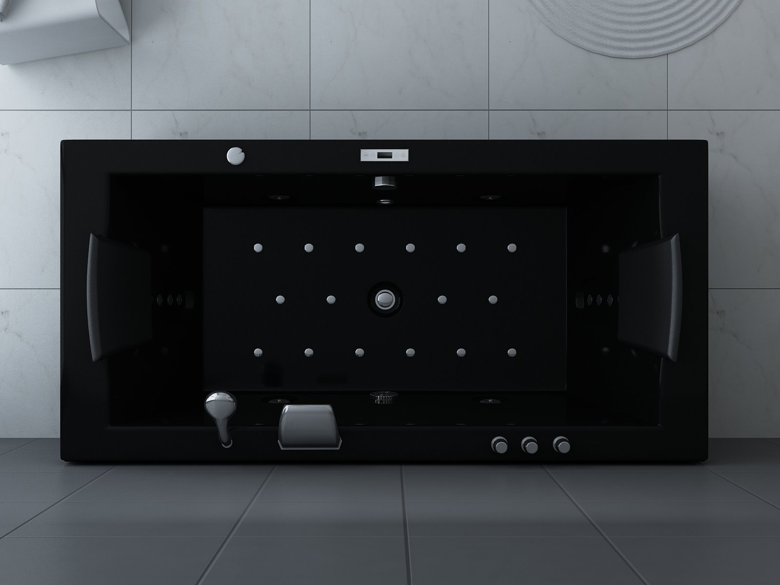 Aantal:1 <br /> Merk:Vonato <br /> Productnaam:Massagebad <br /> Type:RT1802.1BM.OB <br /> Model:Half vrijstaand <br /> Afmeting:1830x900x720mm <br /> Kleur:Hoogglans wit <br /> Waterjets:4 Grote waterjets en 16 airbubble jets. <br /> Voorzien van:Gegalvaniseerd stalen frame - Computer panel - Handdouche - 2 Hoofdkussens - LED-verlichting (7 stuks) - Luchtpomp - Verchroomd RVS Kraan/ waterval. Heater, Ozone, Thermostatische kraan <br /> <br /> Conditie: Nieuw <br /> Ter waarde van: € 4.295,00