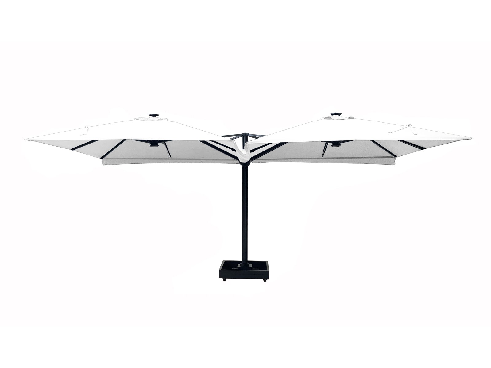 Aantal: 1 <br /> Merk: Vonato <br /> Productnaam: Parasol <br /> Type: U1075 QUATRE 3X3 WHITE <br /> Afmeting: 4x 3000x3000mm <br /> Model: Vierdubbel hangend <br /> Kleur: Wit <br /> Materiaal: Aluminium frame, 200 gram/m2 brandvertragend doek <br /> Productbeschrijving: De parasol is ideaal voor gebruik in de horeca en/of op een groot terras, tuin of binnenplaats. De parasol bestaat uit 4 parasols aan een frame en is voorzien van een grondanker. Exclusief verrijdbare parasolvoet: deze is los verkrijgbaar. <br /> Voorzien van: LED-verlichting onder het doek zodat het 's avonds ook nog goed vertoeven is onder de parasol. <br /> - Groot parasoldoek, 4 stuks, met een afmeting van ø300 cm. - Sterk en stevig frame gemaakt van aluminium. <br /> - Eenvoudig startklaar te zetten voor gebruik. <br /> - Brandvertragend, dik doek voor een betere UV-bescherming.<br /> - Ventilatie aan de bovenzijde van het doek.<br /> - De parasols zijn voorzien van een afritsbaar tussenstuk om de parasols te verbinden, zodat u altijd droog zit.<br /> <br /> <br /> Conditie: Nieuw <br /> Ter waarde van: € 4.495,00