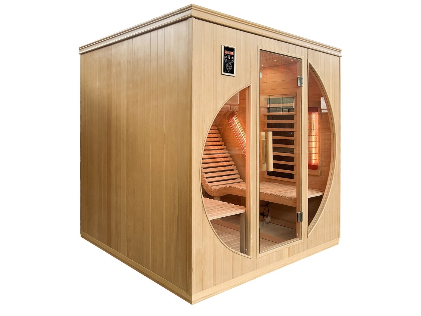 Aantal:1 <br /> Merk:Vonato <br /> Productnaam:Sauna <br /> Type:SMI-B202 <br /> Model:Infraroodkachel - rechthoekig - Tweepersoons <br /> Elec: 6Kw en 220 Volt <br /> Afmeting:1800x1800x1900mm <br /> Verwarming:Infraroodverwarming - Verwarmde giethars platen die evenredig warmte afgeven binnen de sauna <br /> Voorzien van:Helder veiligheidsglas (8mm) - Ventilatierooster - Control Panel met USB aansluiting en Bluetooth - Speakers - 220V - Plafondverlichting - Houten deurhendel - 2 ligbedden <br /> <br /> Conditie: Nieuw <br /> Ter waarde van: € 4.795,00