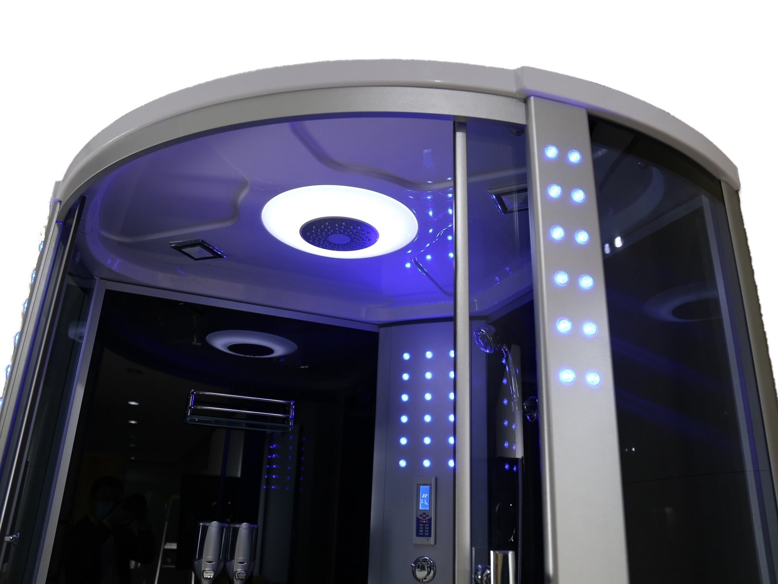 Aantal:1 <br /> Merk:Vonato <br /> Productnaam:Stoomcabine met massagebad <br /> Type:2586W <br /> Model:Massagebad - Halfrond <br /> Afmeting:1350x1350x2200mm <br /> Waterjets:6 Waterjets zorgen voor een aangename rugmassage. <br /> Voorzien van:Schuifdeuren met waterdichte afsluiting - Hand- en regendouche - Digitaal bedieningspaneel - Sfeerverlichting - FM-radio met speaker en CD-aansluiting - Port om de telefoon op aan te sluiten - - Antislip bodem - Ventilator - Cabine staat op verstelpoten die eenvoudig te stellen zijn in hoogte. <br /> <br /> Conditie: Nieuw <br /> Ter waarde van: € 4.695,00