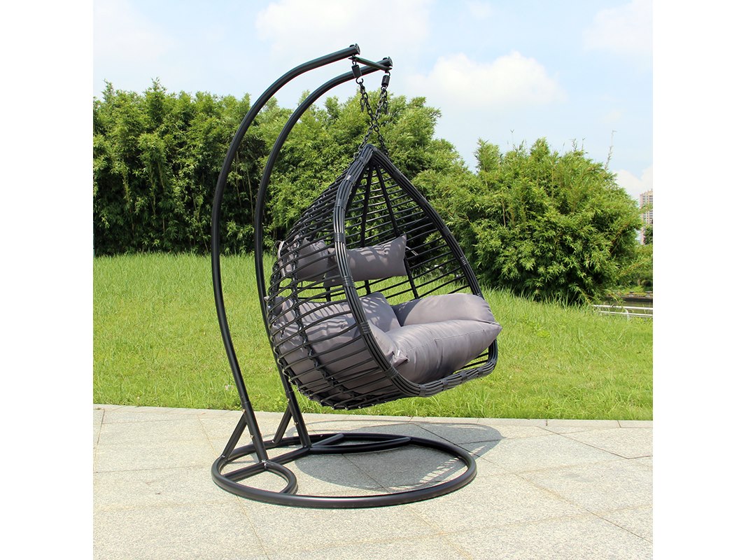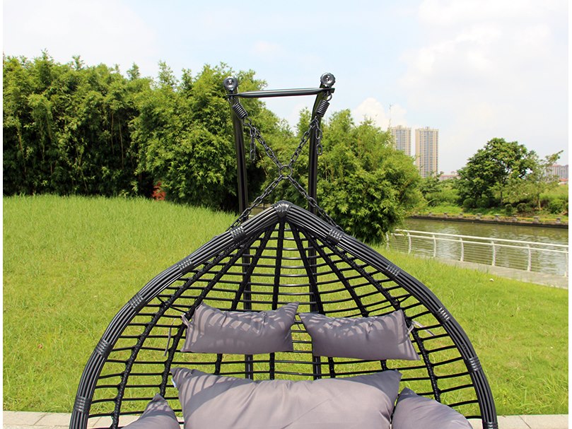 Hangstoel dubbel: 2 persoons 135 cm breed - hoogte 197 cm - zwart frame / grijze kussens