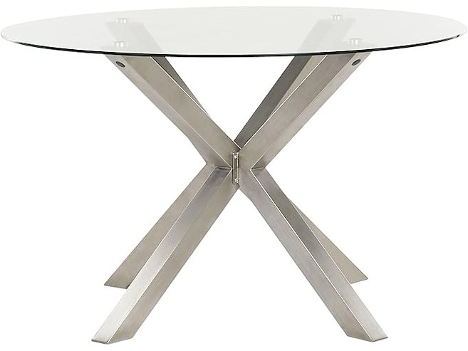Ongebruikt, volledig, ok, Beliani Moderne tuintafel roestvrijstaal ⌀ 120 cm aluminium poten transparant glas tafelblad zilver Maletto, B0DVZRMT7T