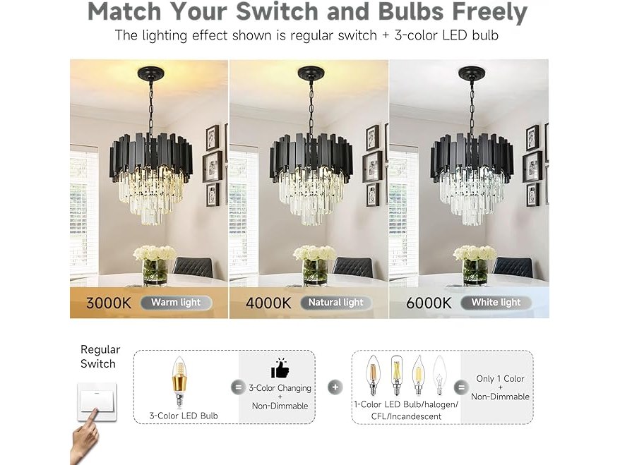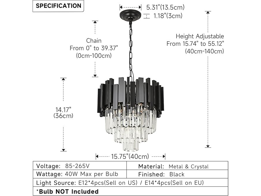 Ongebruikt, getest en werkend, ok, AOOCHOK Zwart Kristallen Hanglamp, Kleine Kristallen Hanglamp voor Entree, Gang, Balkon, Veranda, Restaurant, Deuropening, E14x4, Φ40cm, B0DCFMBLHY
