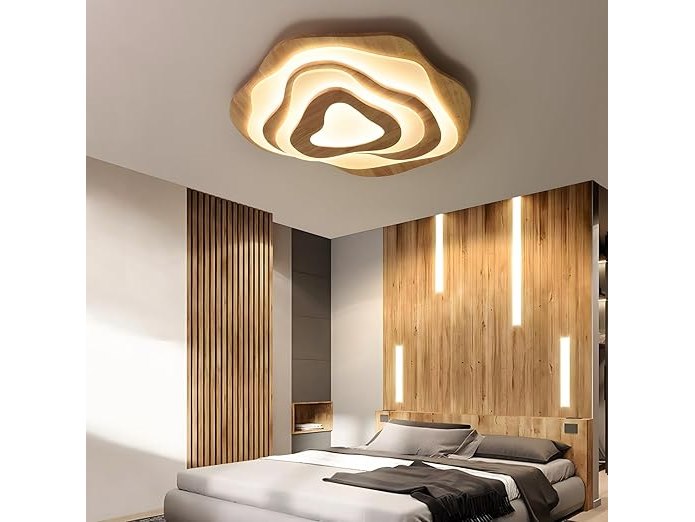 Ongebruikt, getest en werkend, volledig, ok, Wayluong Houten LED-Plafondlamp | Ø57cm 50W 4300lm | 3000K-6000K Dimbaar Met Afstandsbediening, Moderne Natuurlijke Houten + Acryl Wolkenlamp, Woonkamer Kind Slaapkamer Keuken Eetkamer Thuiskantoor, B0CWR2Y8XN