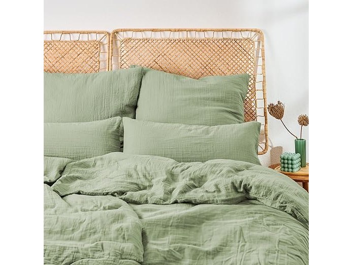 Ongebruikt, ok, Blumtal mousseline bedlinnen 135x200 cm in een set van 2 - OEKO-TEX gecertificeerd bedlinnen 135x200 katoen - 2x dekbedovertrek 135 x 200 + 2x kussensloop 80x80-135x200 mousseline bedlinnen groen, B0D6Z3RMMC