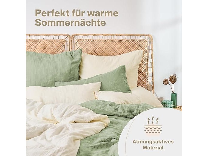 Ongebruikt, ok, Blumtal mousseline bedlinnen 135x200 cm in een set van 2 - OEKO-TEX gecertificeerd bedlinnen 135x200 katoen - 2x dekbedovertrek 135 x 200 + 2x kussensloop 80x80-135x200 mousseline bedlinnen groen, B0D6Z3RMMC