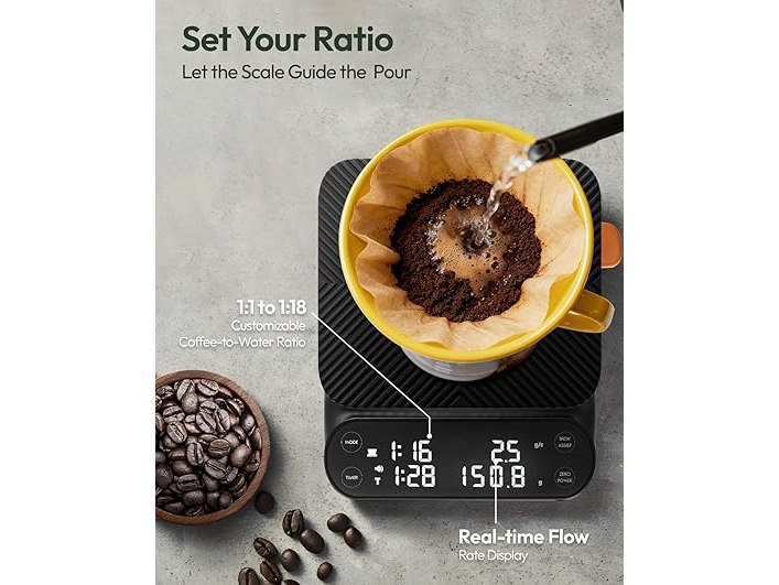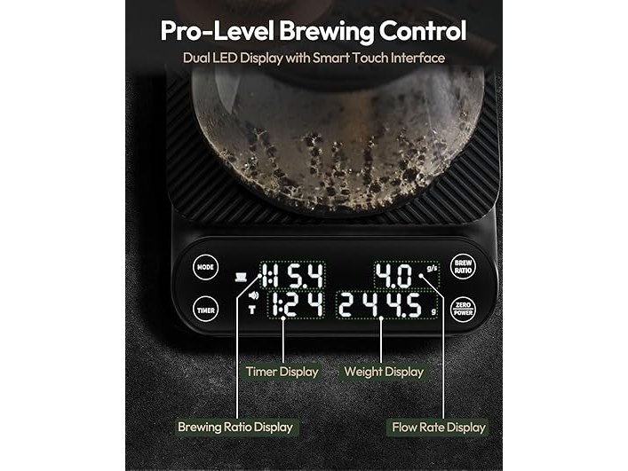 Ongebruikt, getest en werkend, ok, Maestri House S3 Koffieweegschaal met timer, 3 kg/0,1 g oplaadbare digitale weegschaal, 3 brouwmodi, instelbare verhoudingen en debietweergave, barista-kwaliteit voor overgieten, espresso, B0F3CZRT3C