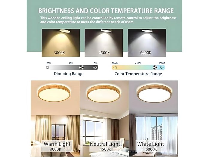 Ongebruikt, getest en werkend, volledig, ok, WayLuoung Houten LED-Plafondlamp | Ø50cm 3000-6000K 36W | Ronde Top 360° Glow Natuurlijke Houten Lamp, Slaapkamer Woonkamer Kinderkamer Keuken Eetkamer Thuiskantoor (Dimbaar Met Afstandsbediening), B0CY4RSYSM