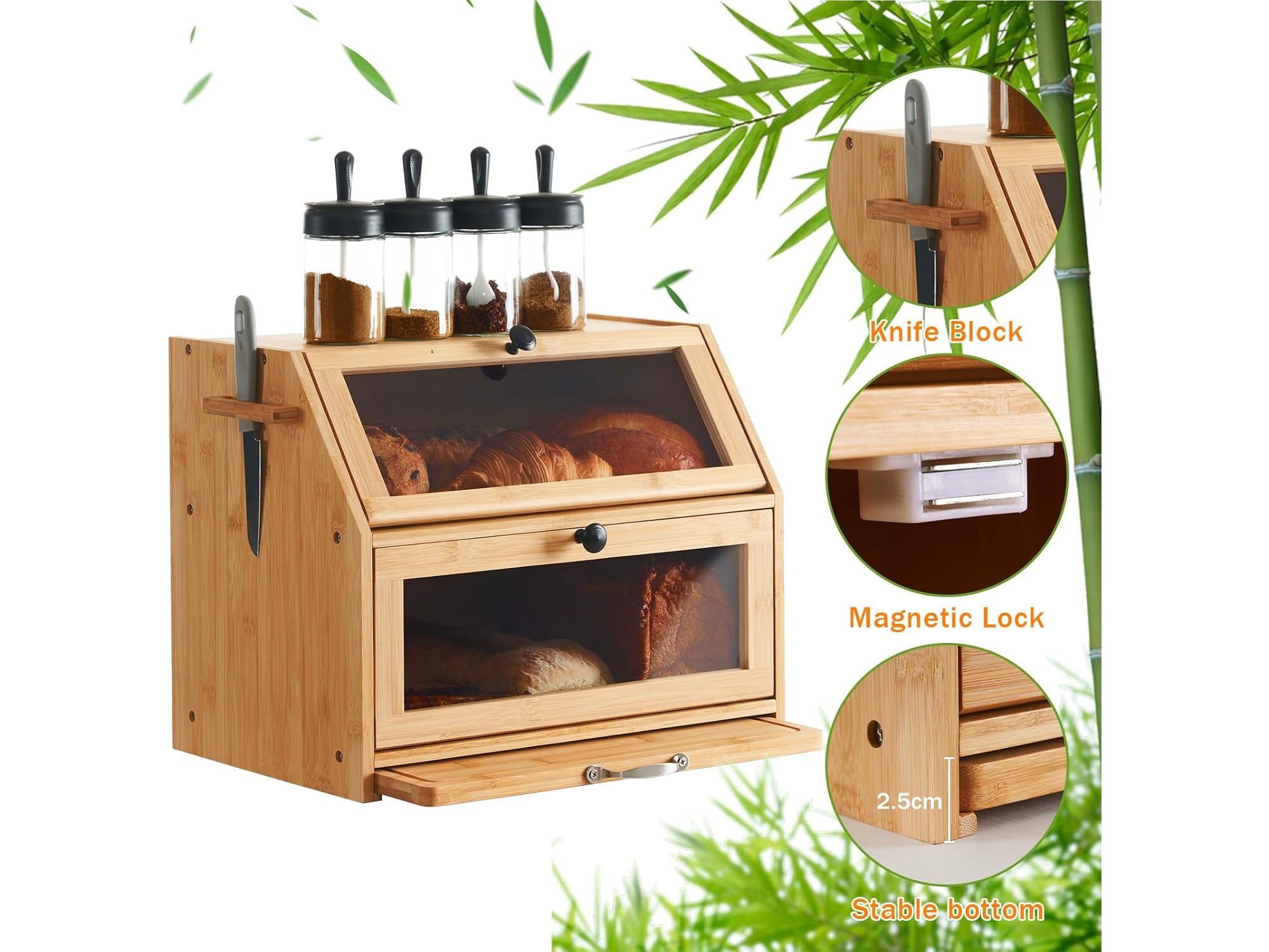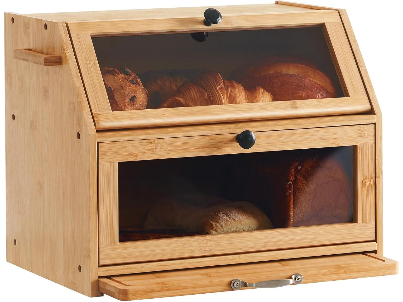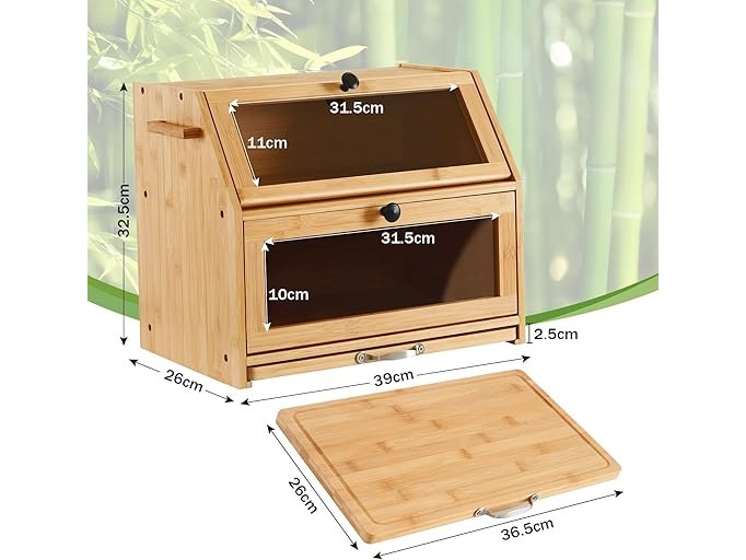 Minieme gebruikssporen, ok, YOUDENOVA Broodtrommel, bamboe, eco broodmand met snijplank, opbergdoos, keuken, broodopslag, broodcontainer, gevisualiseerd voor brood, roosterbrood, 39 x 26 x 32,5 cm (l x b x h), natuurlijk bamboe, B0C713T6MD