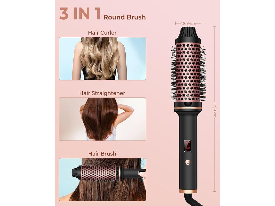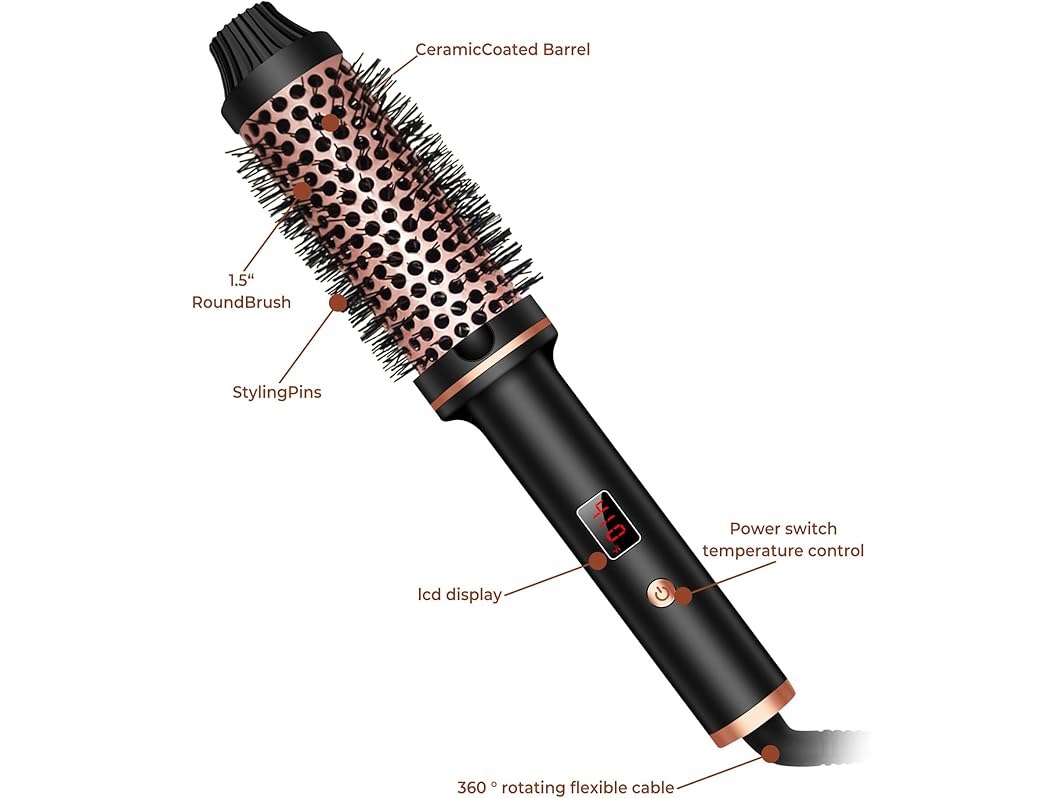 Ongebruikt, getest en werkend, volledig, ok, Thermal Brush Krulborstel, haarstyling, warmteborstel, 38 mm volume haarkam, lcd-display 120-210 °C, hete borstel produceert wortelvolume en losse krullen, dubbele spanning geschikt voor op reis,B0CBLLM1QW