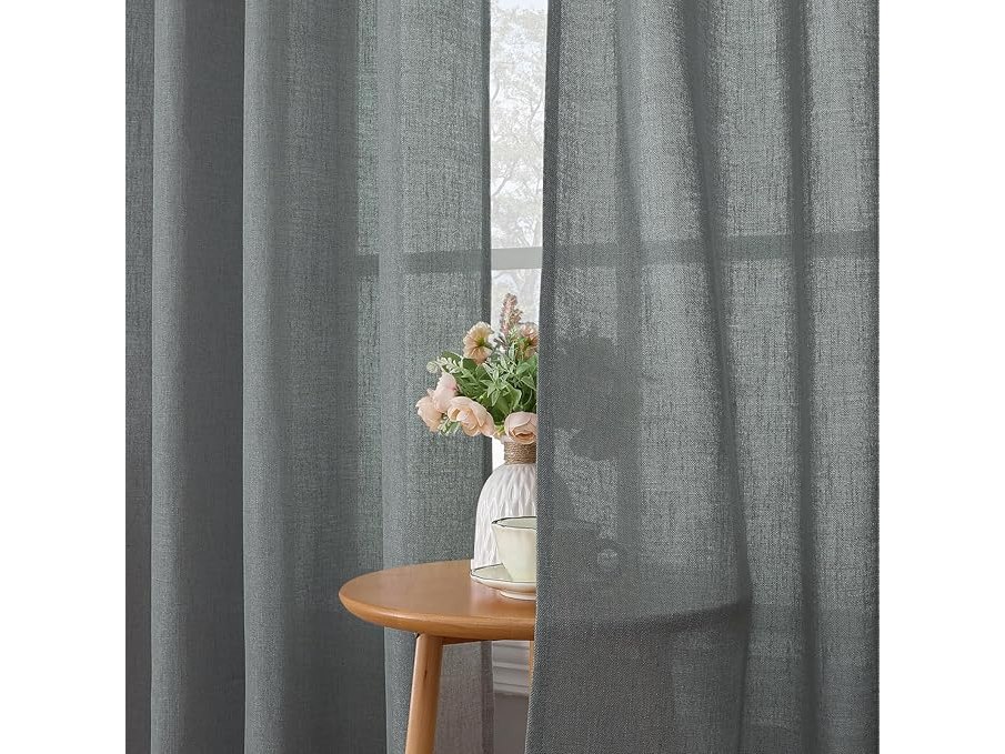 Ongebruikt, ok, CUCRAF Linnen gordijnen met oogjes, landhuisstijl, voile gordijn, half-transparante gordijnen voor slaapkamer, kinderkamer, woonkamer, H 260 x B 140 cm, set van 2, grijs,B0BVFHX996