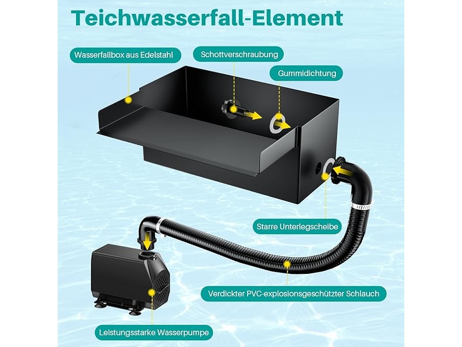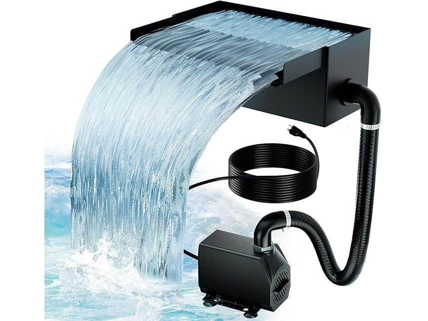 Gebruikssporen, getest en werkend, volledig, ok, Biling Vijver waterval bladenset, 20 cm roestvrijstalen overloop zwembadfontein met 660 GPH pomp en duurzame buis voor vijver, zwembad, beekloop, tuin, terrasdecoratie, B0DMR5R7W4